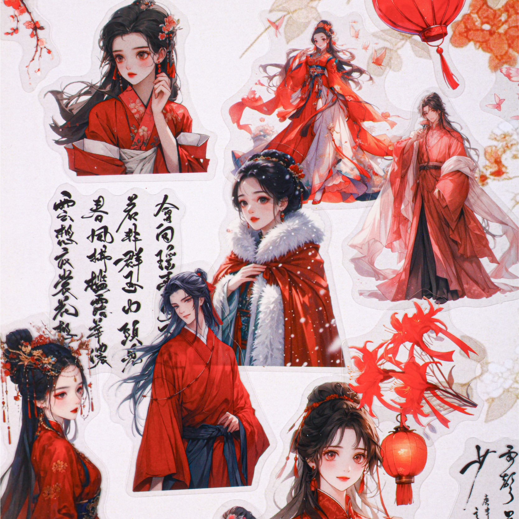 15Pcs Chinese Style Character PET Stickers