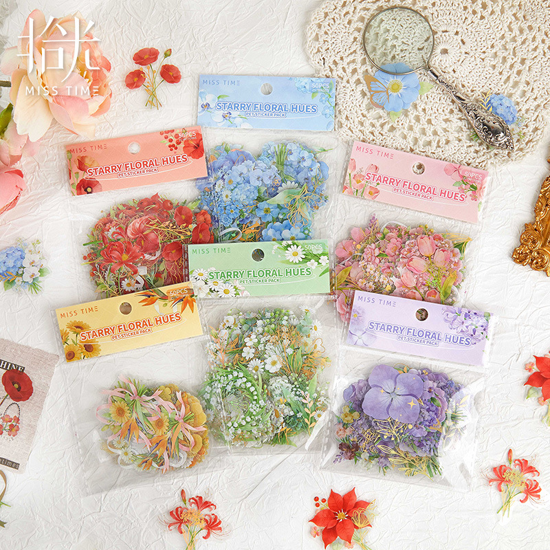 50PCS Starburst & Floral Theme PET Sticker Set