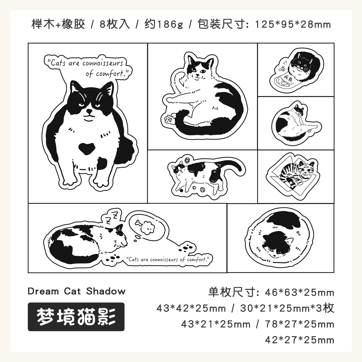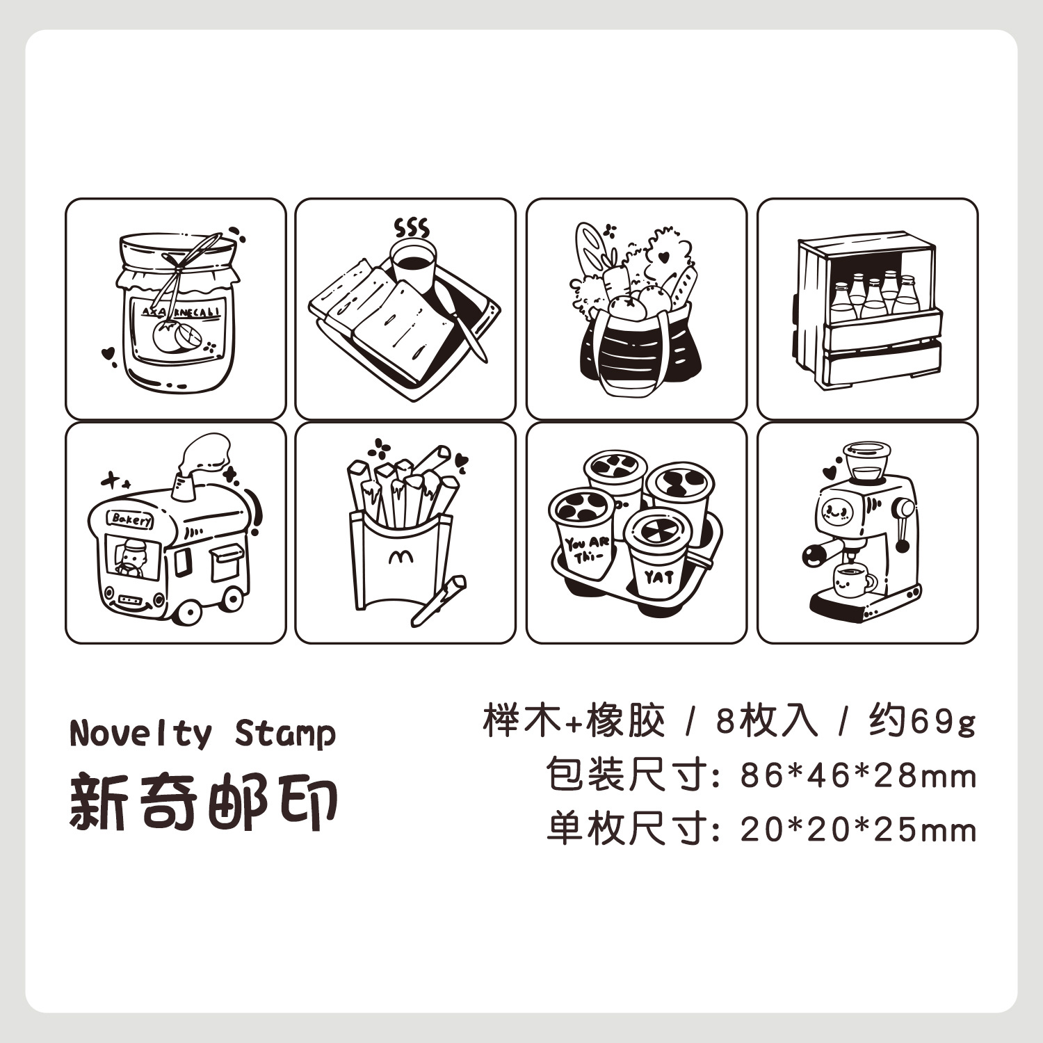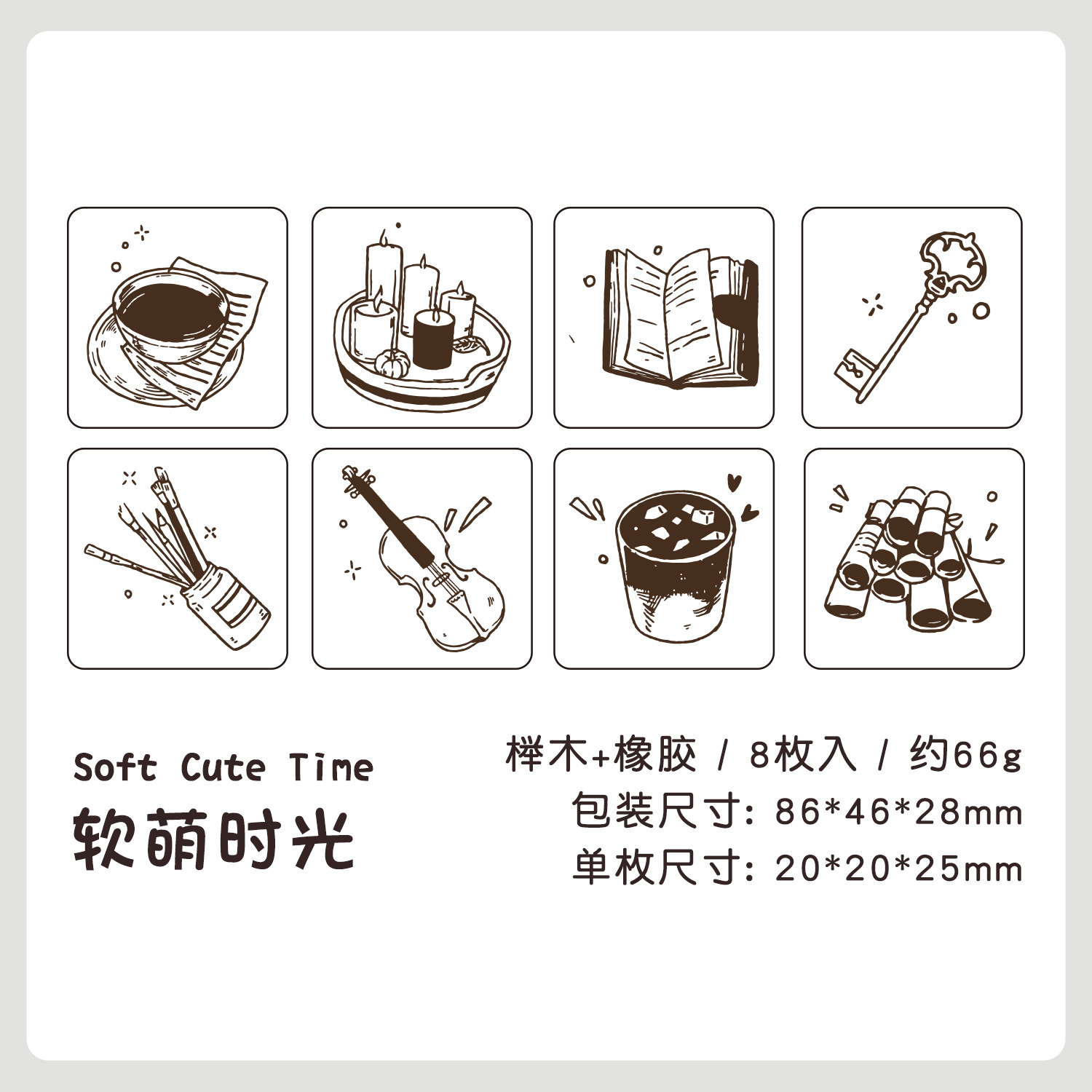 8Pcs/Set Cute Coffee Music Daily Necessities Elements Wood Stamps