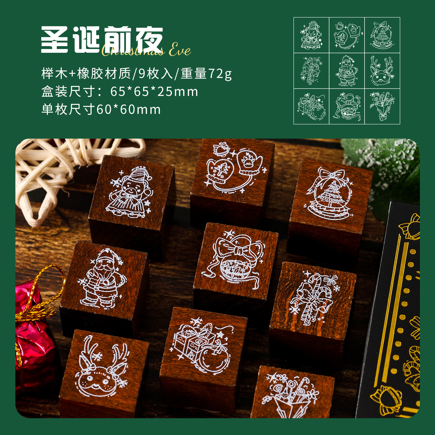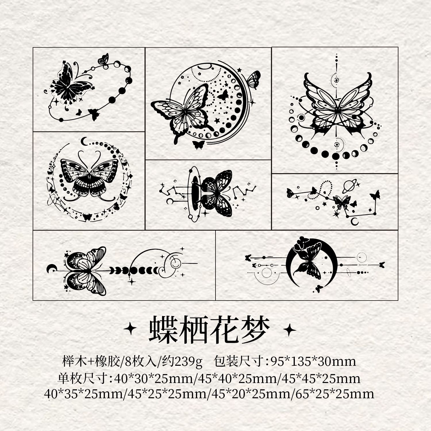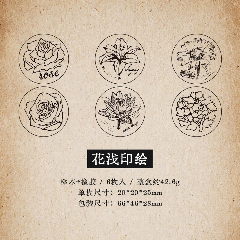 6 Pcs Wooden Rubber Stamp Set Flowers Planet Postmark Stamps