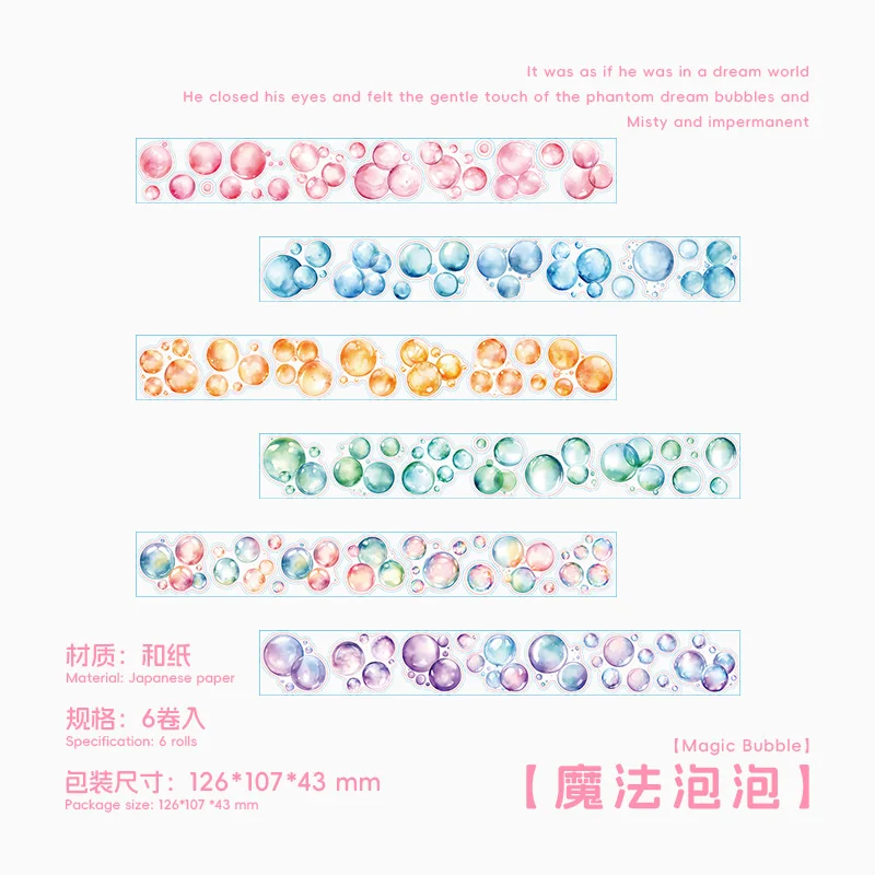 50mm*2m/6 rolls Watercolor Bubbles Theme Washi Tape