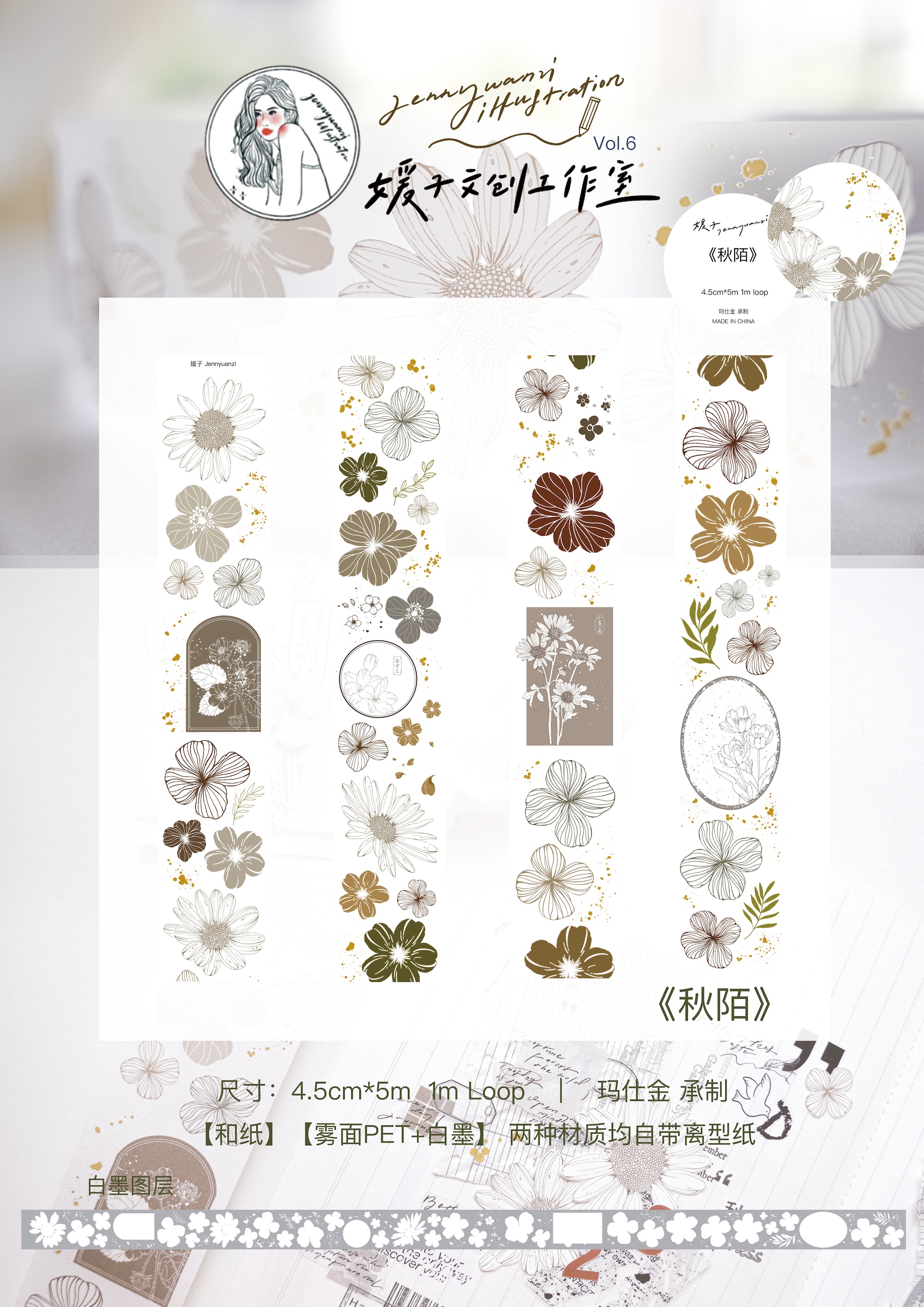 Yuanzi Studio Retro Flower Washi/Pet Tape