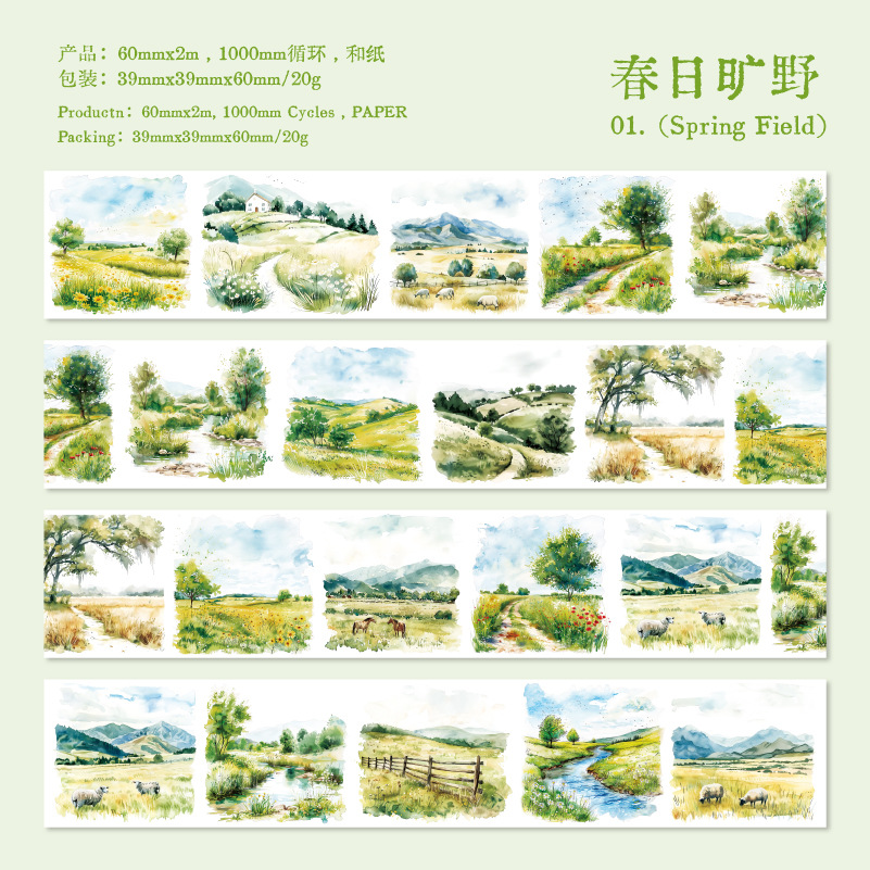Art Journaling - Season Landscape Theme Washi Tape 2.36 inches * 78.74 inches