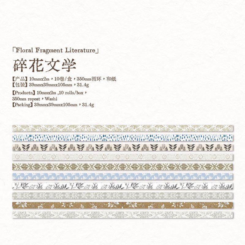 10 Rolls Scrapbook Collage Elements Washi Tape Set 0.39*78.74 inch
