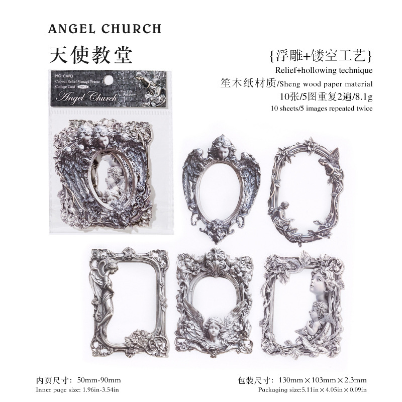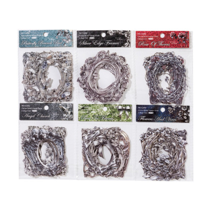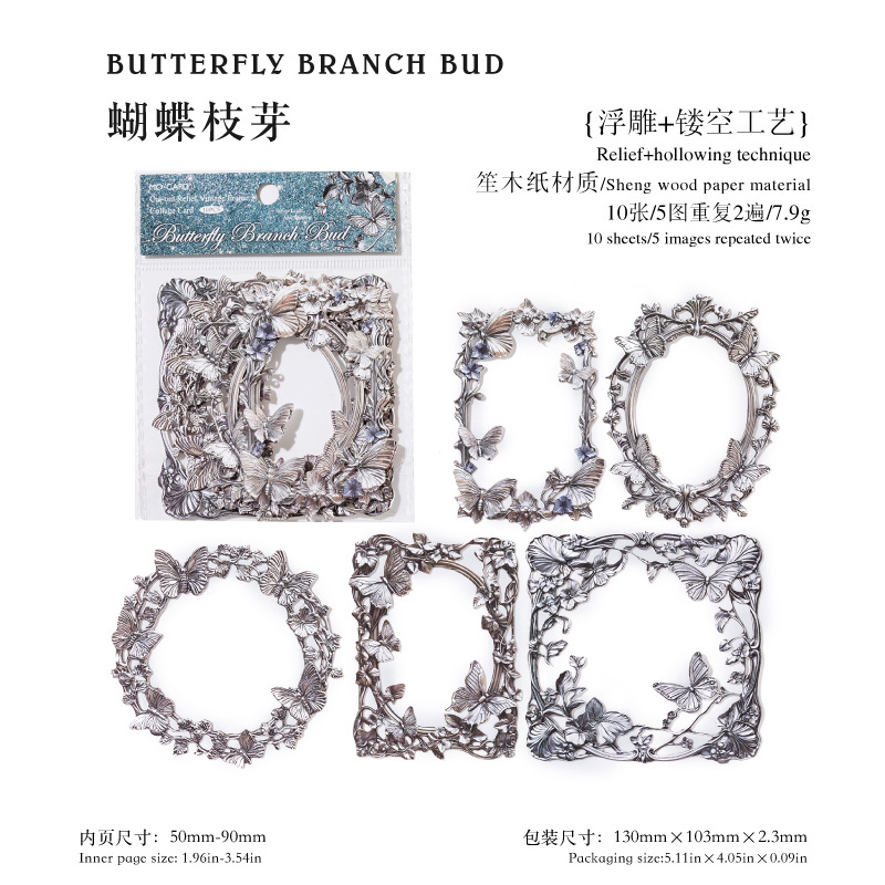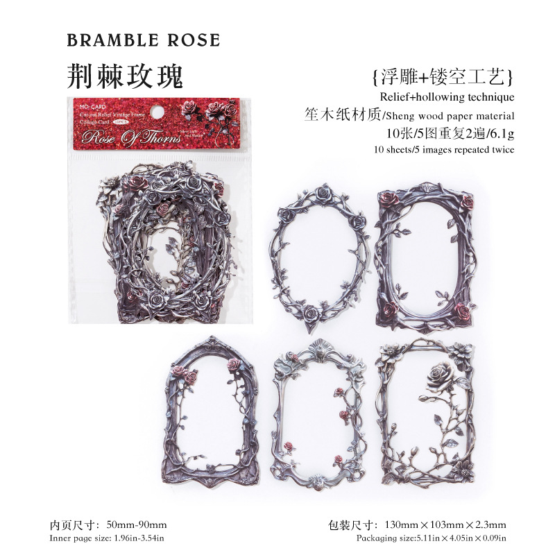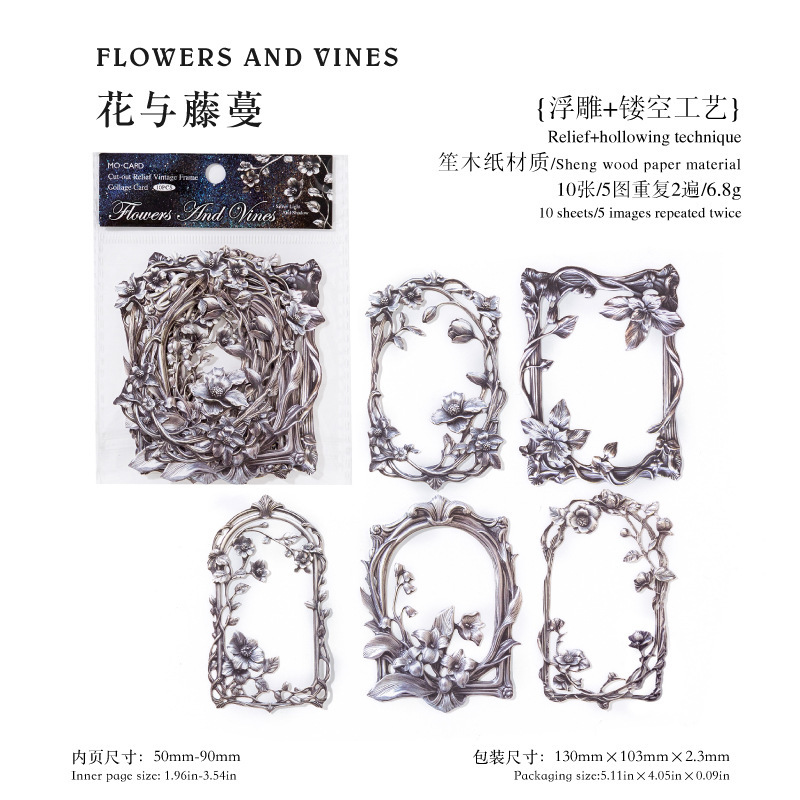 10Pcs/Pack Retro Dark Embossed Floral Border Material Paper