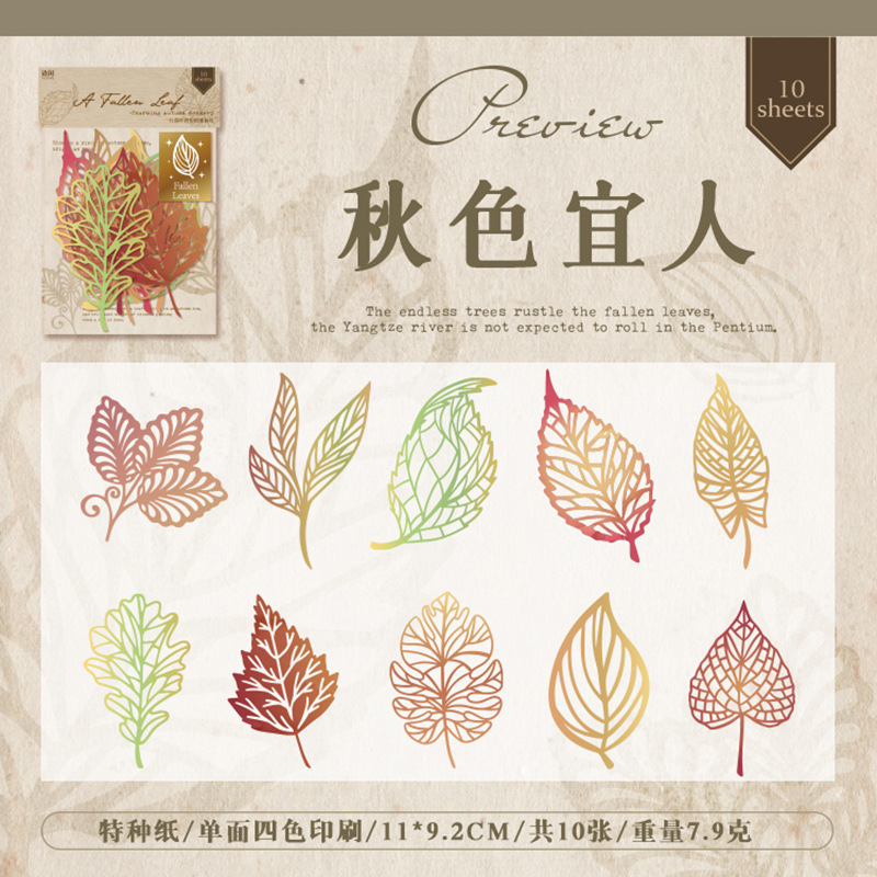 10Pcs Vintage Hollow Leaves Theme Material Paper