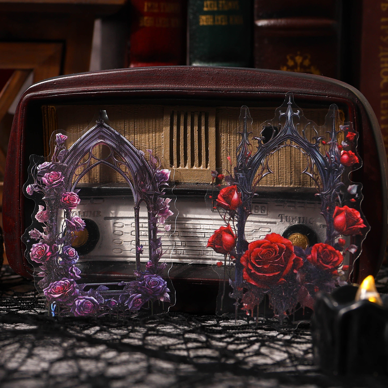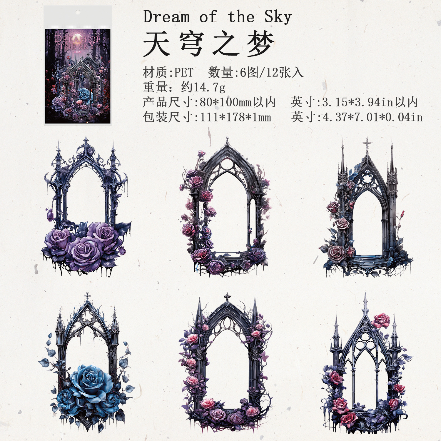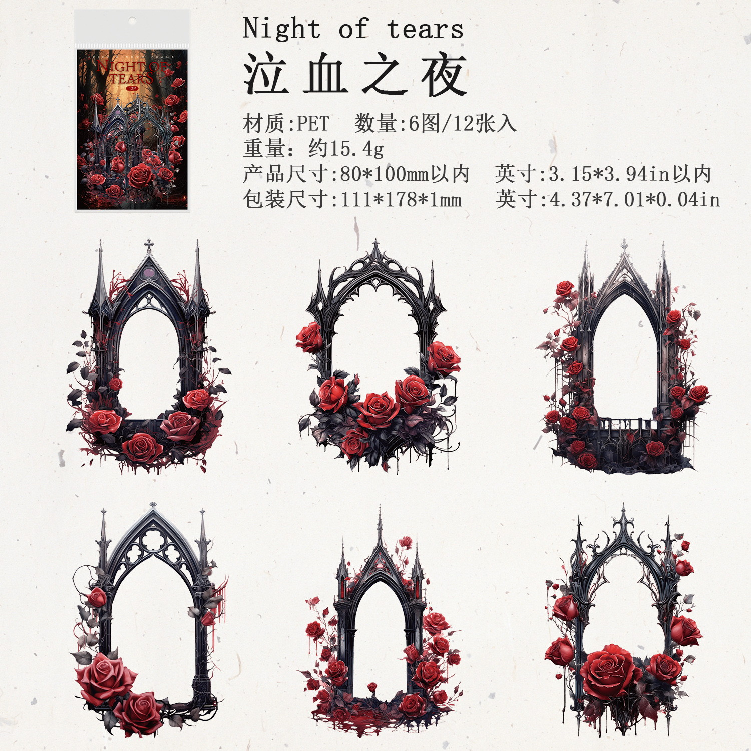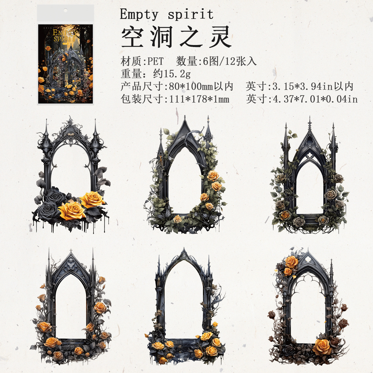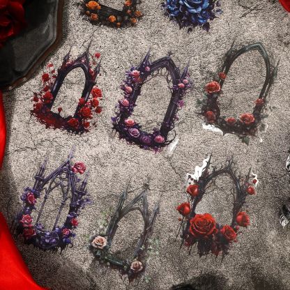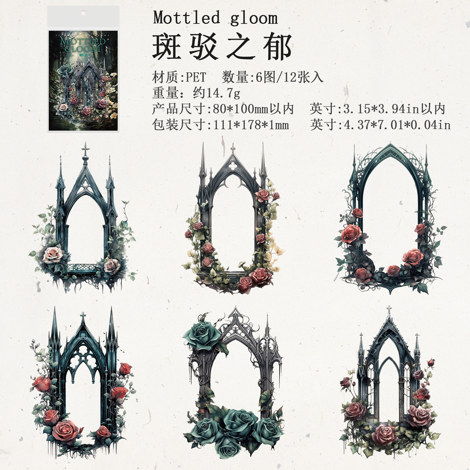 12Pcs Dark Gothic Window Frame Theme PET Stickers
