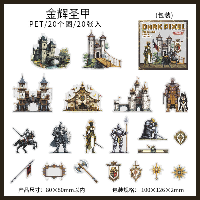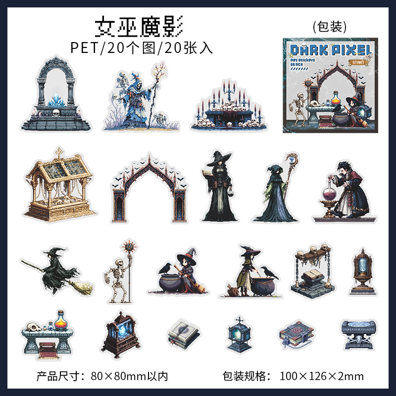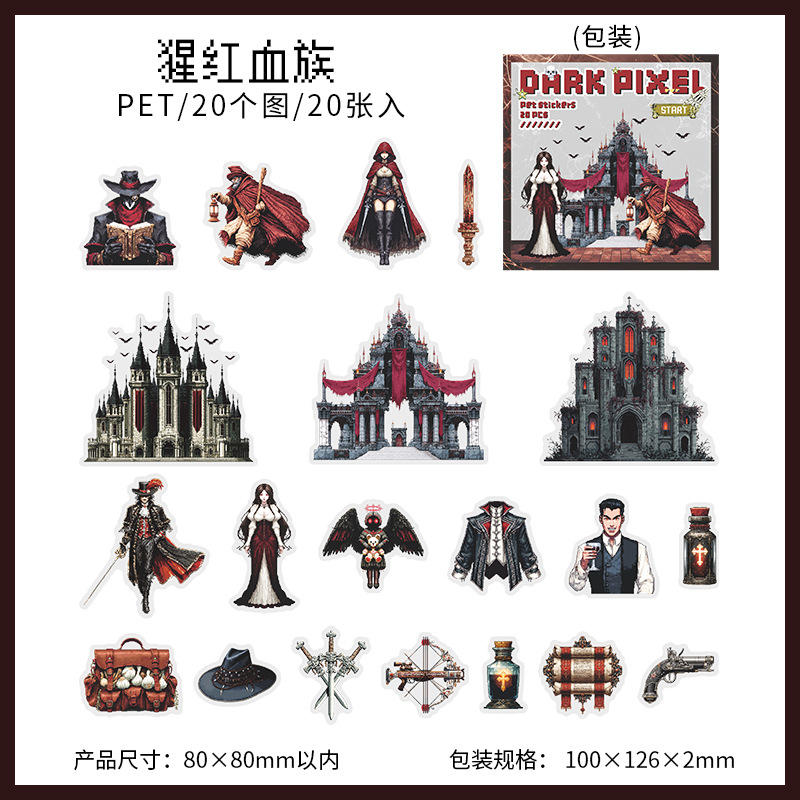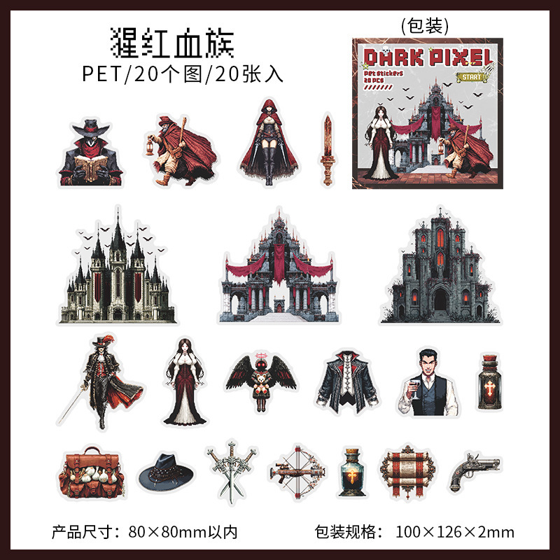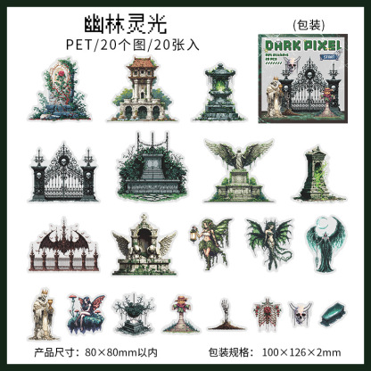 20Pcs Dark Castle Gothic Pixel Style PET Stickers