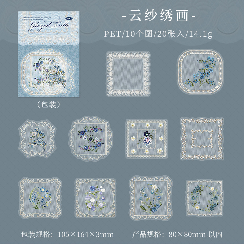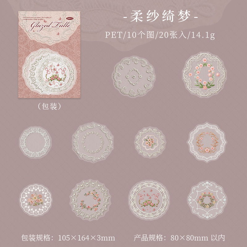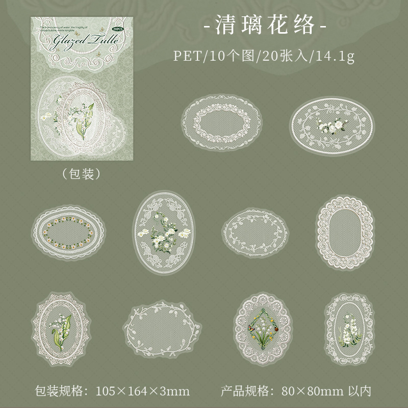 20Pcs Lace Border Theme PET Stickers
