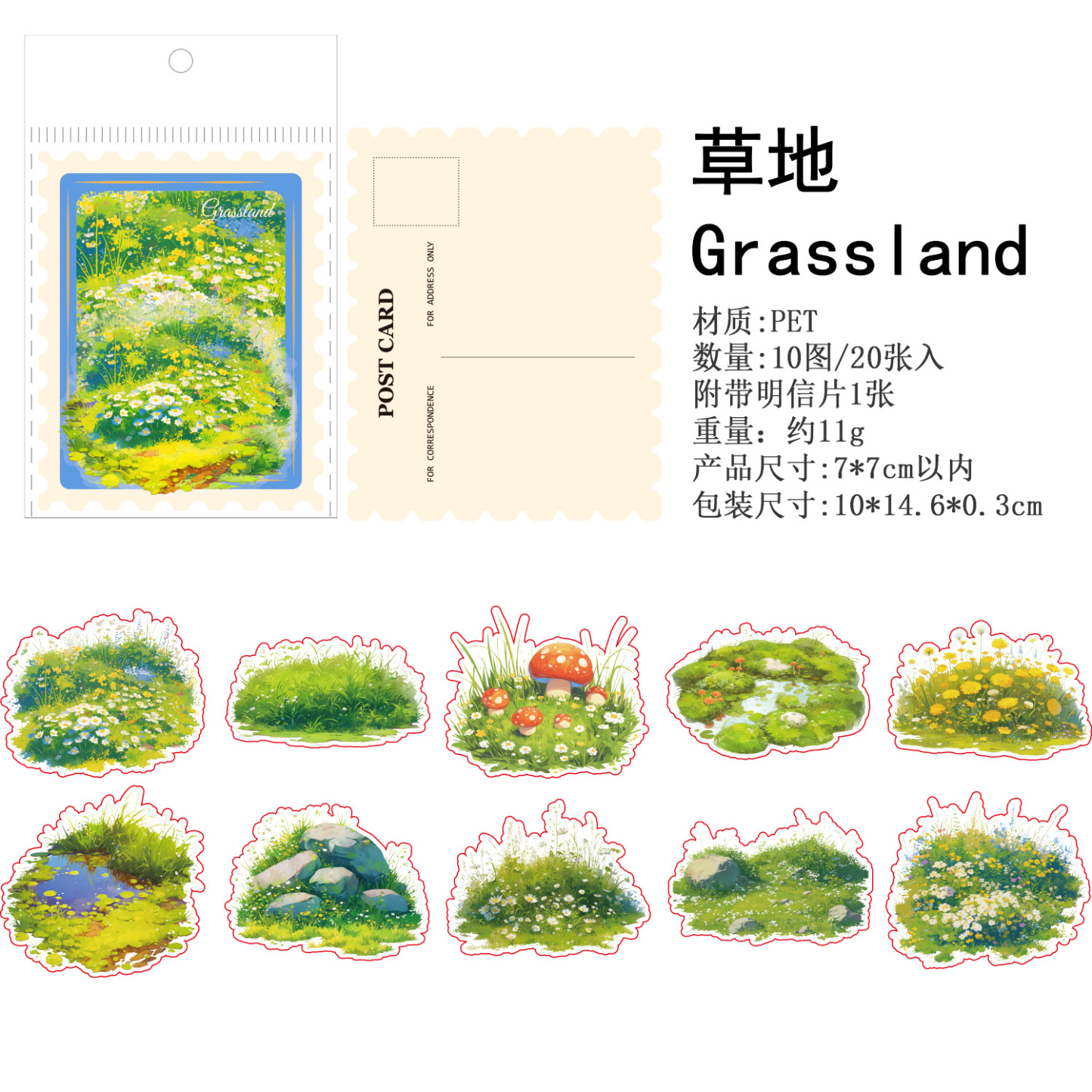 20Pcs/Pack Flowers and Grass Theme PET Stickers