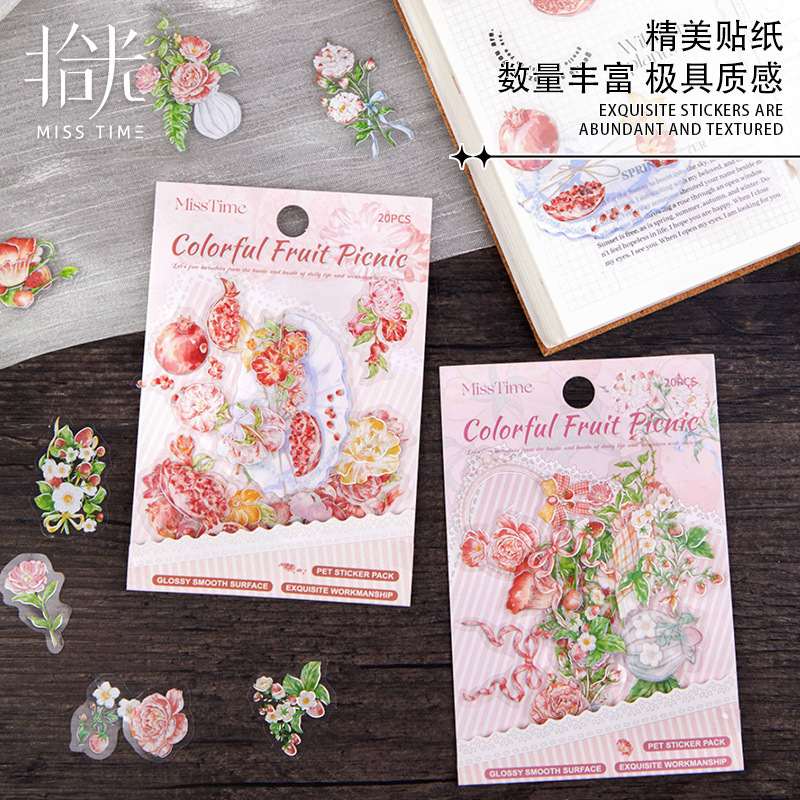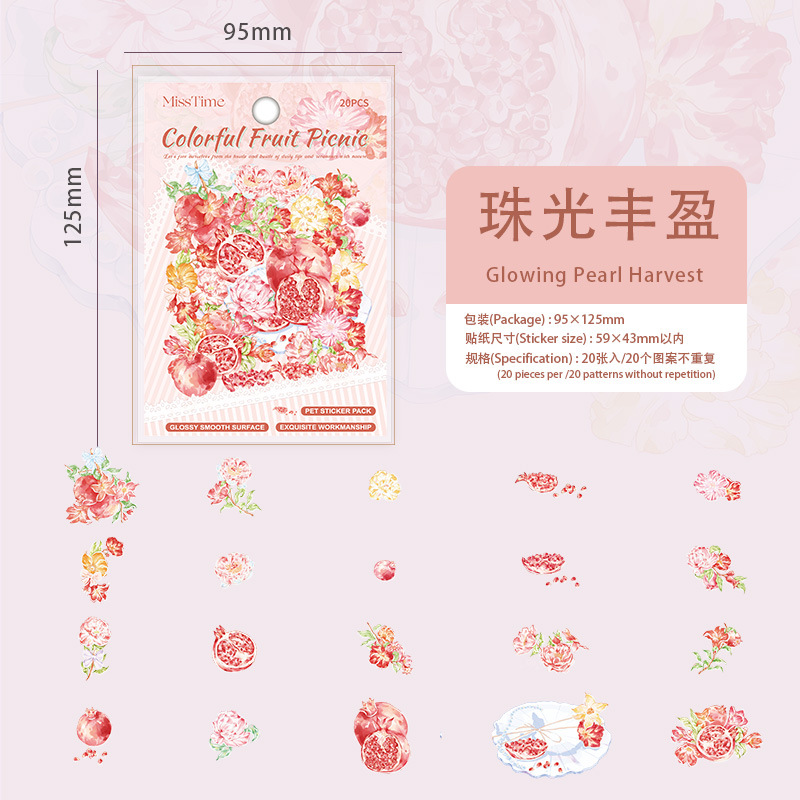 20Pcs/Pack Fruit Picnic Theme PET Stickers