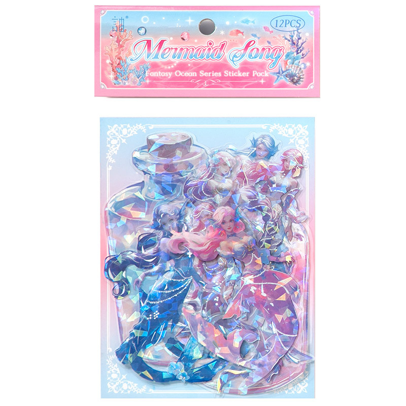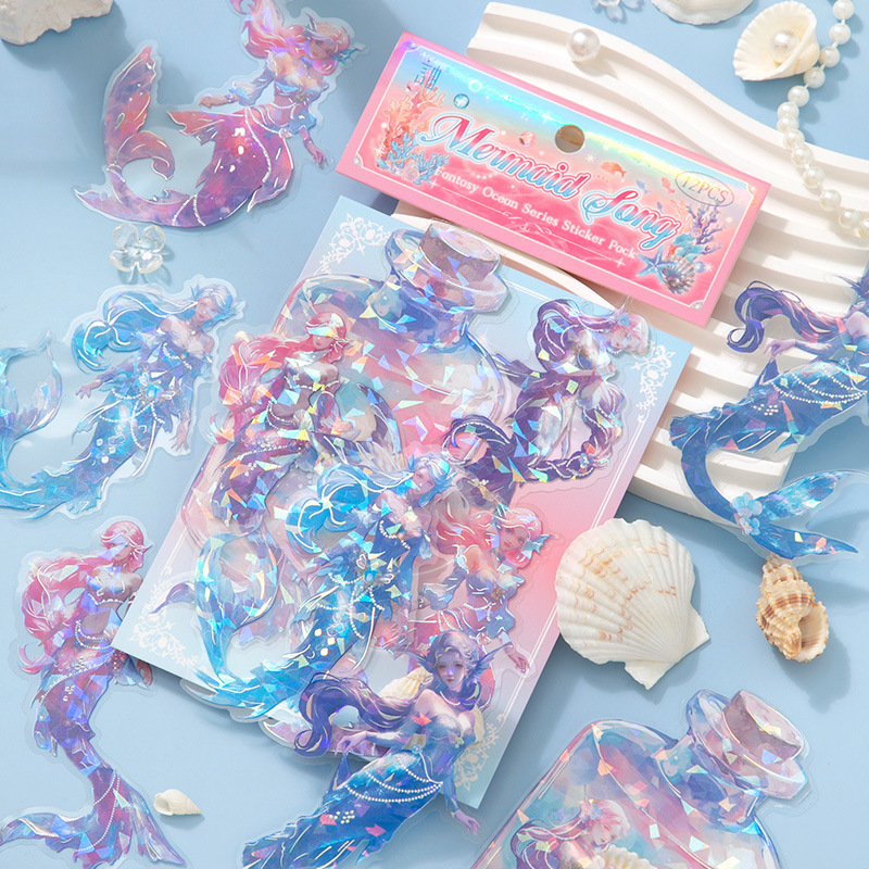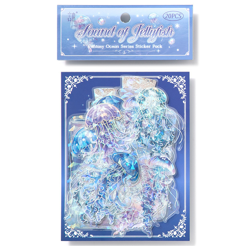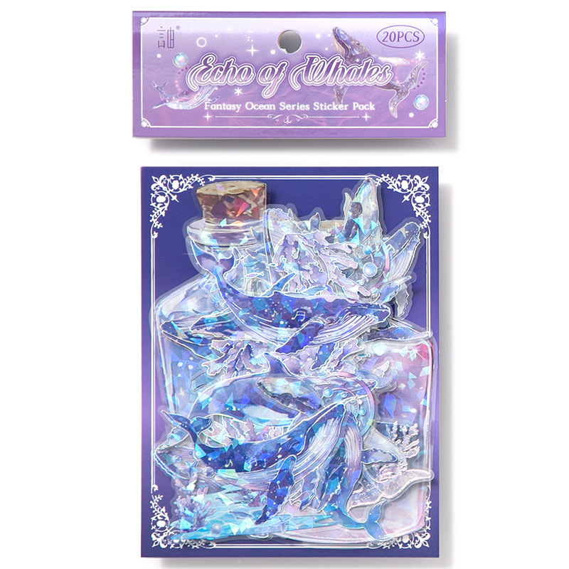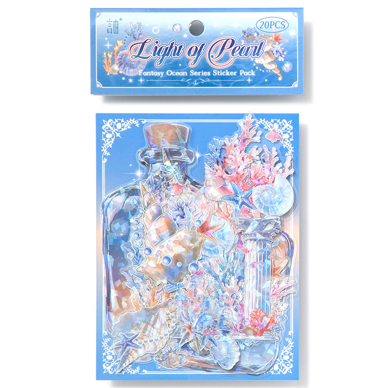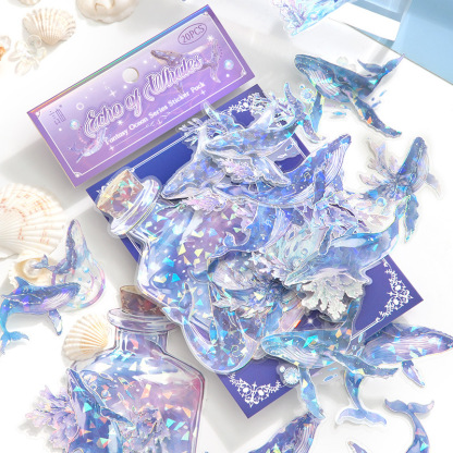 20Pcs/Pack Ocean Water Wood Whale Coral Theme Shell Light PET Sticker Holographic