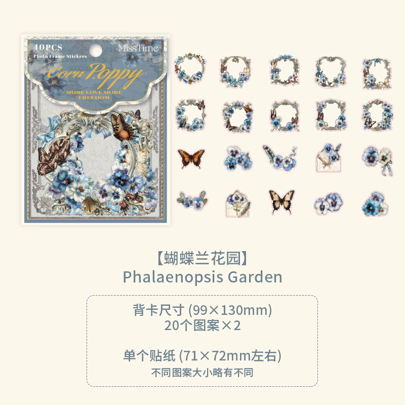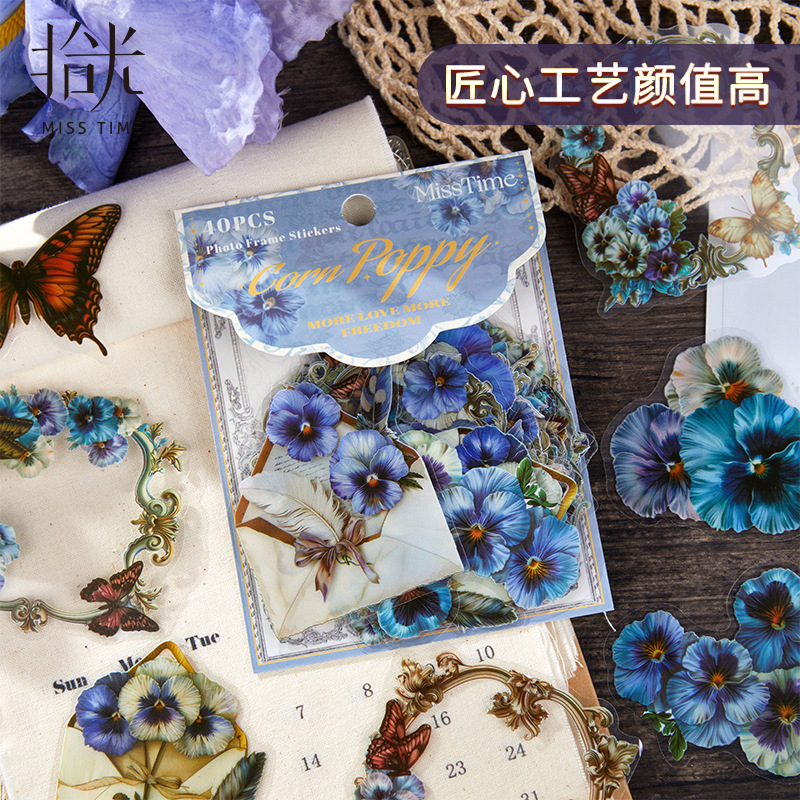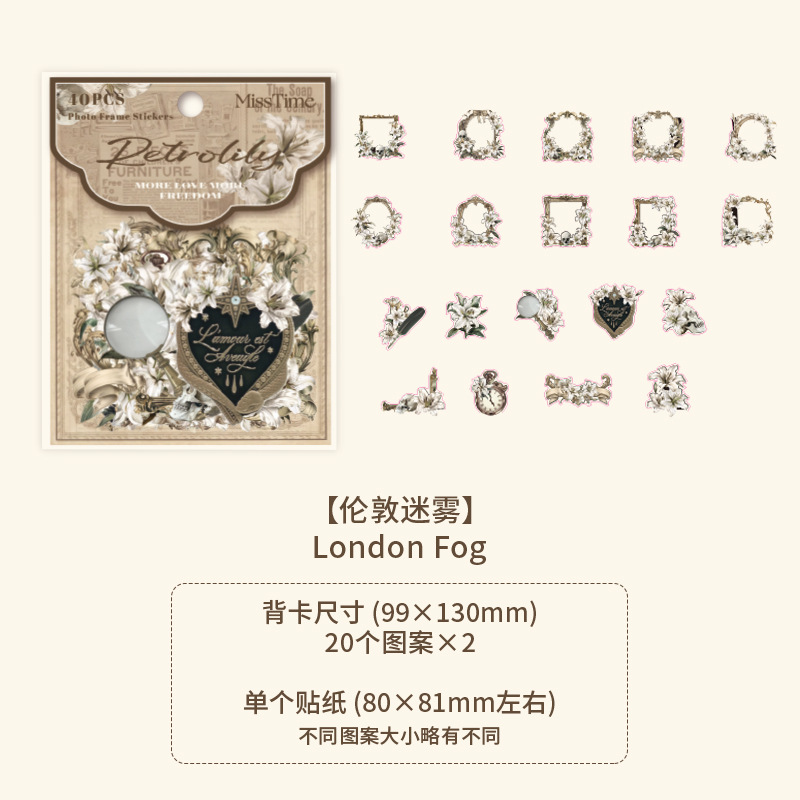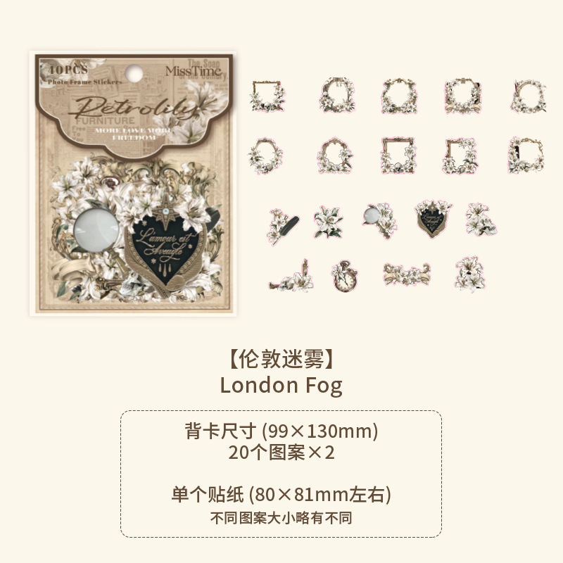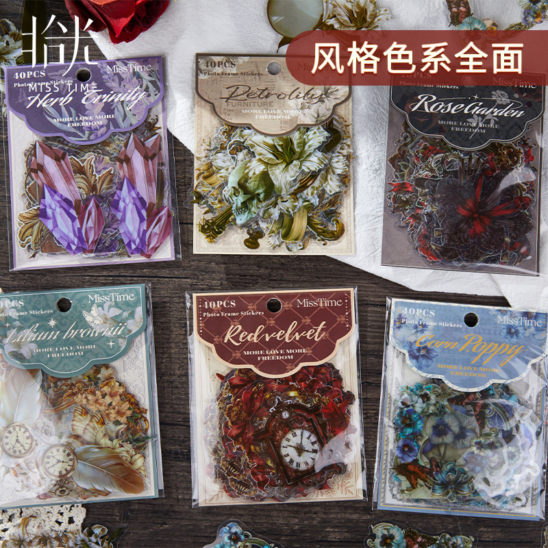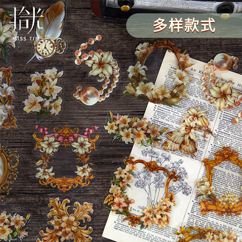 20Pcs Vintage Floral Theme PET Stickers