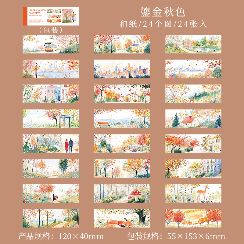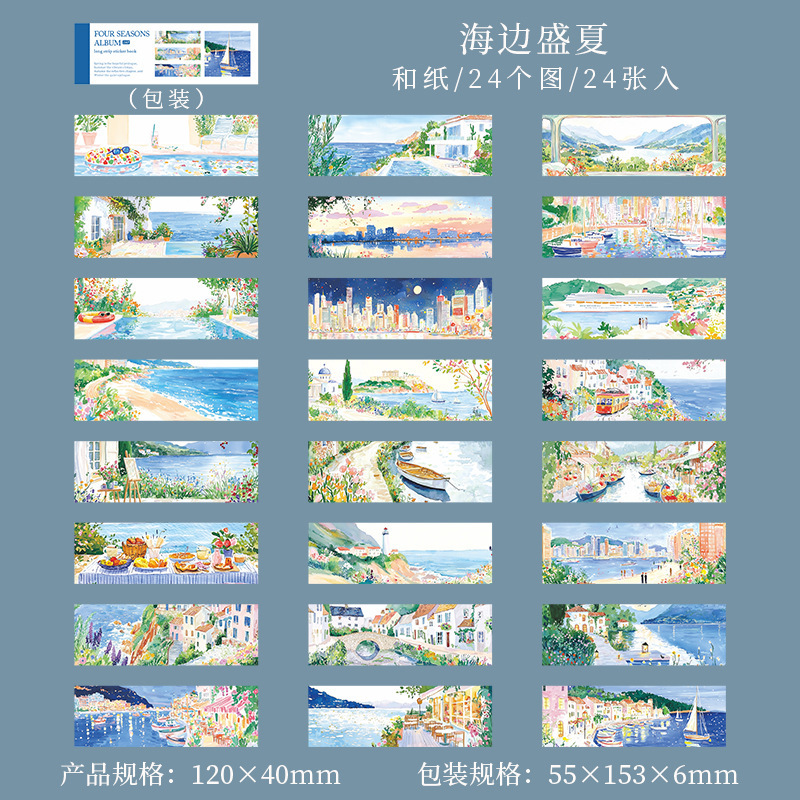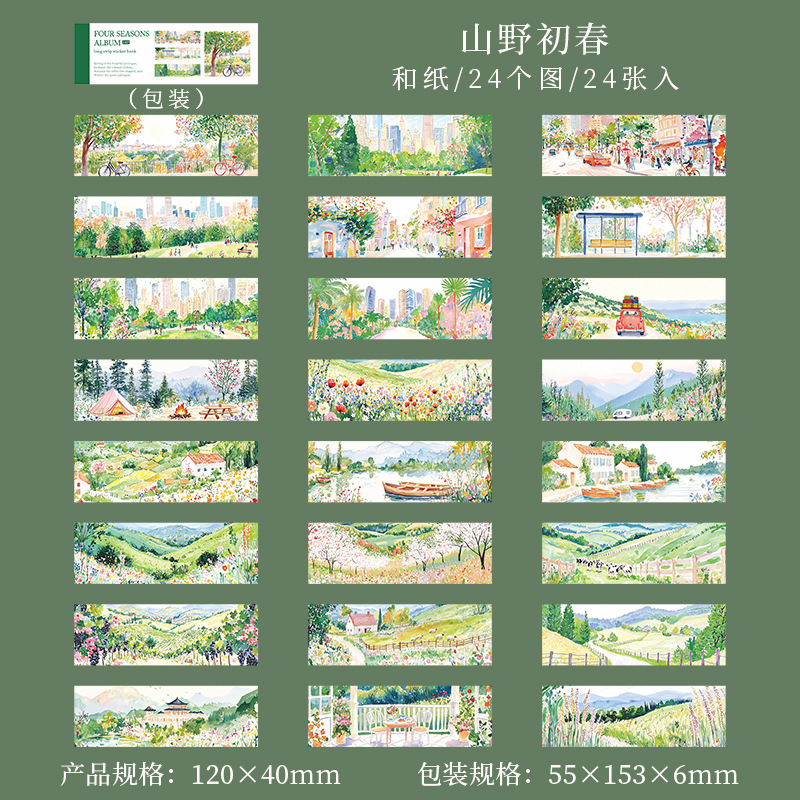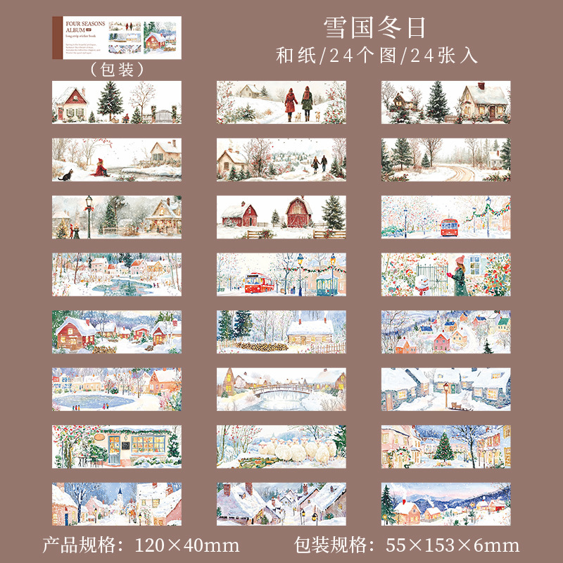 24Pcs Four Seasons Landscape Strip Washi Sticker Book