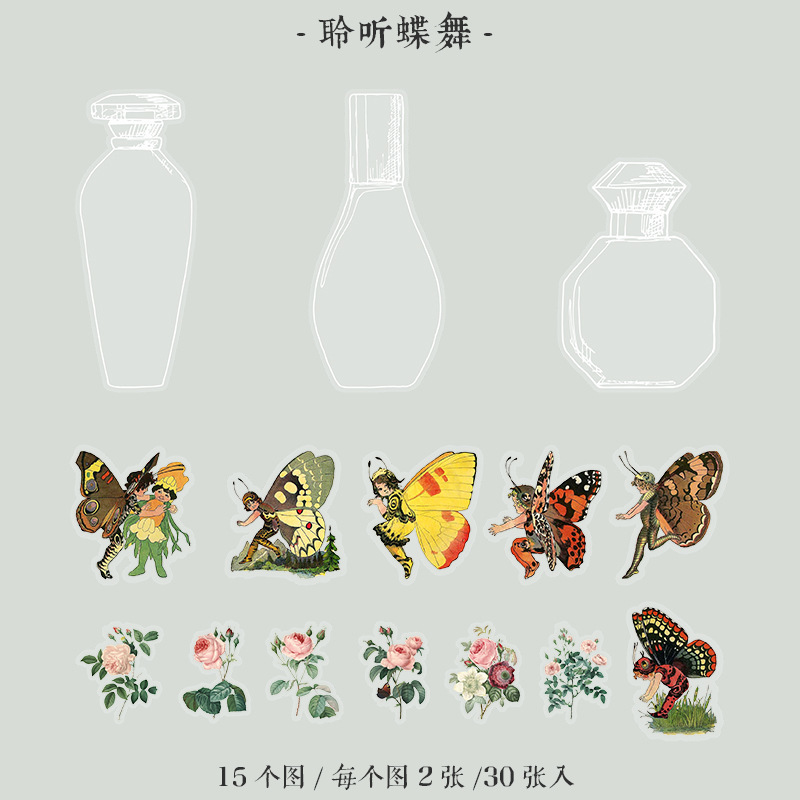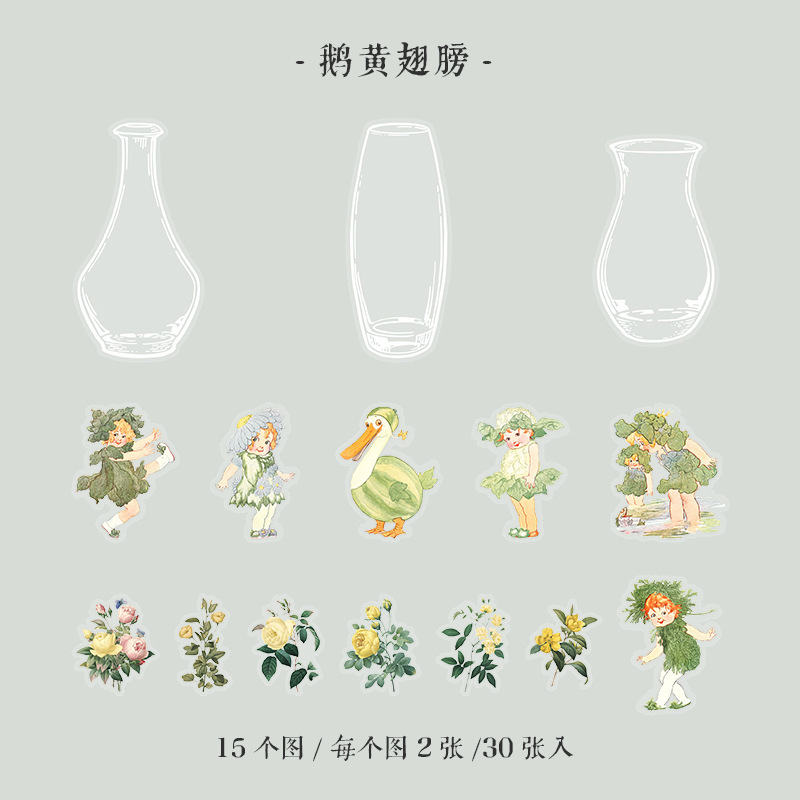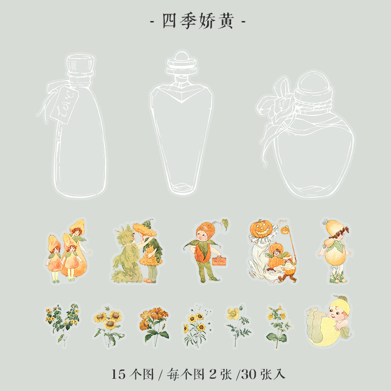 30Pcs Forest Elf Theme PET Stickers