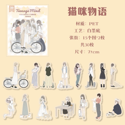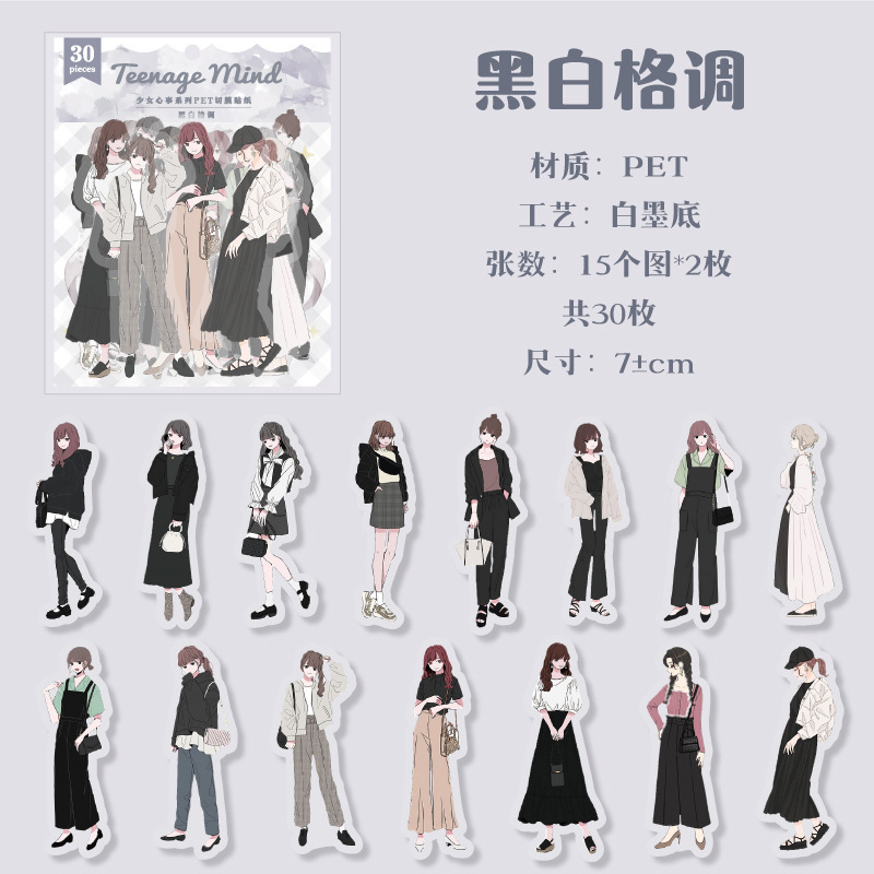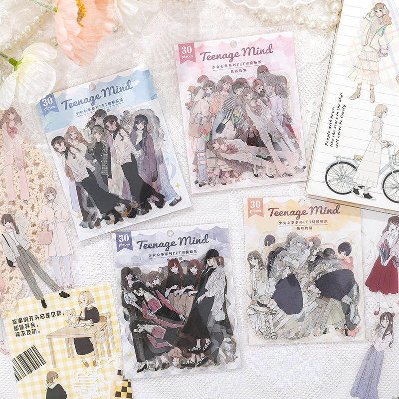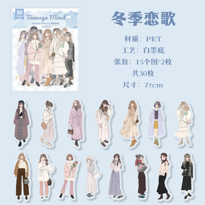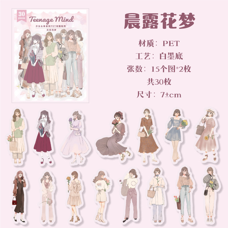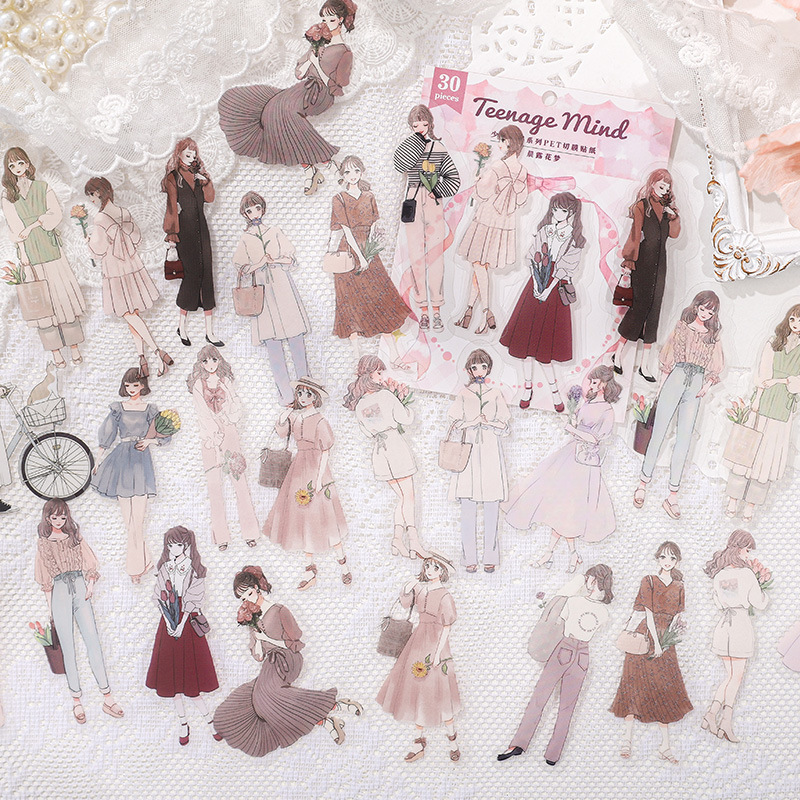 30Pcs Girls Theme PET Stickers