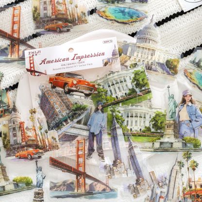 30Pcs/Pack Travel Architecture Landscape Theme PET Stickers