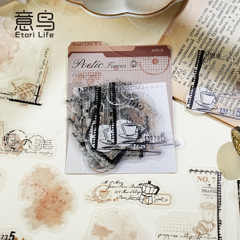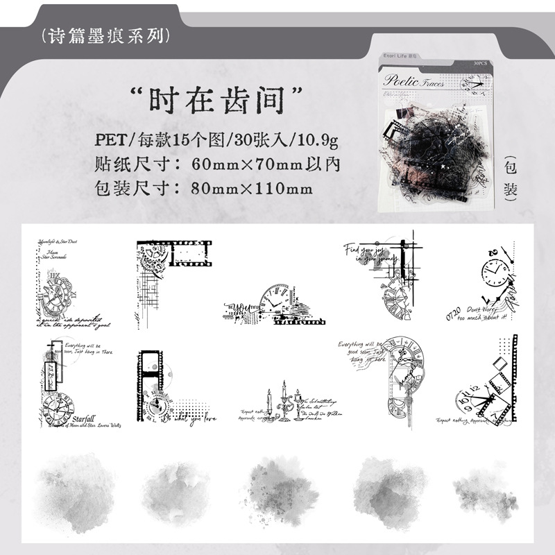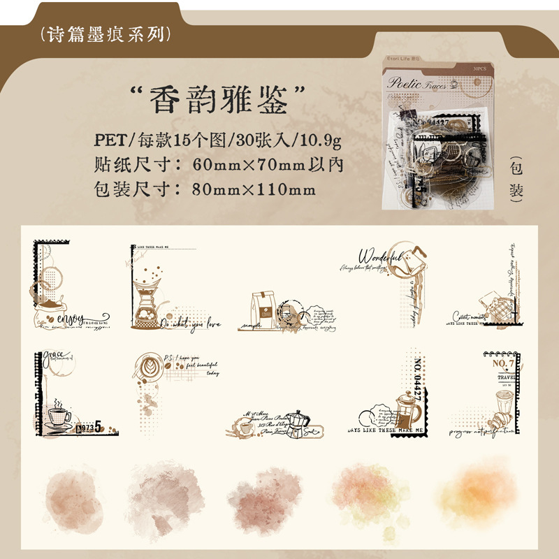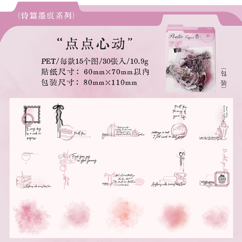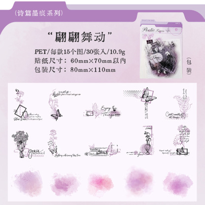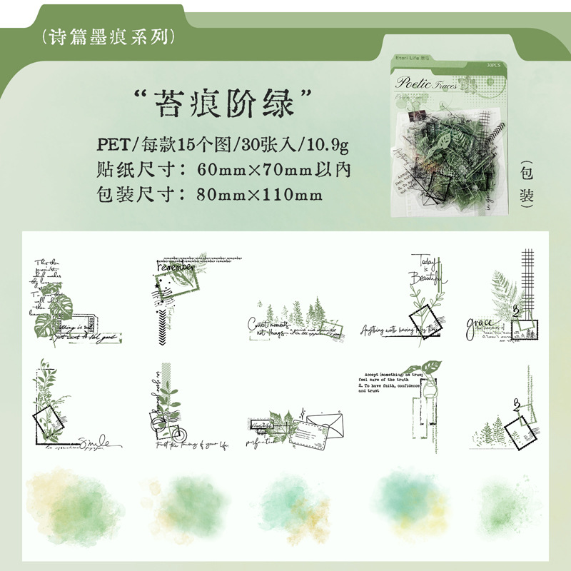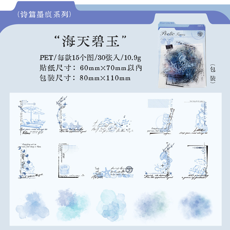 30Pcs Smudged Watercolor Paragraph PET Stickers