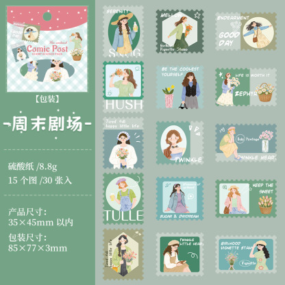 30Pcs Stamp Collage Elements Sticker
