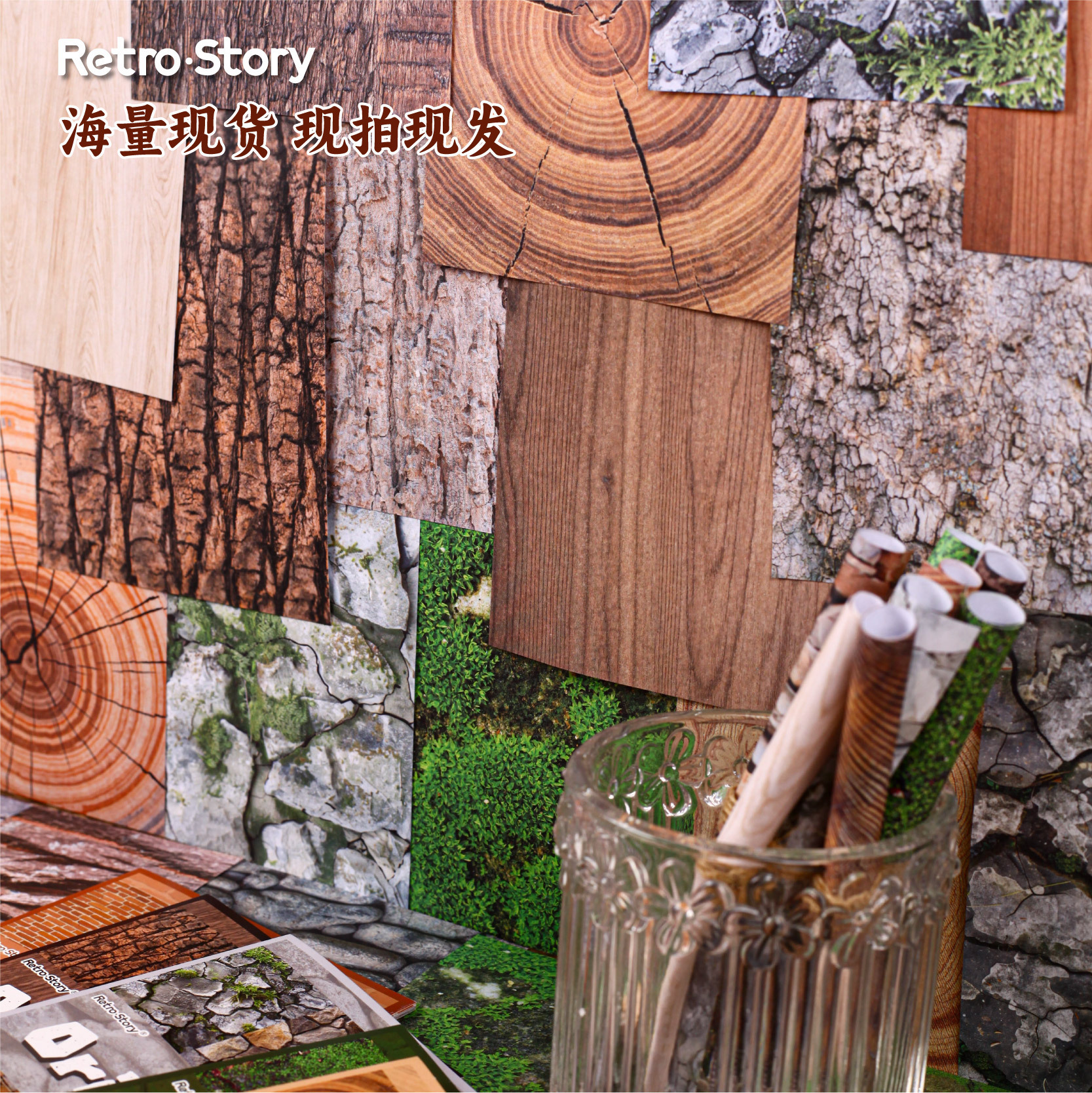 30Pcs Tree Wood Grain Theme Material Paper