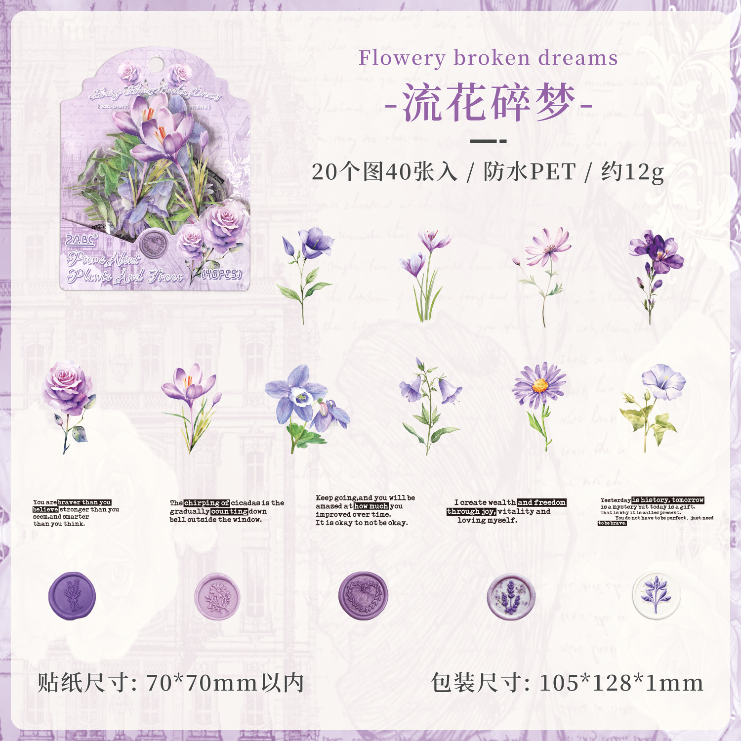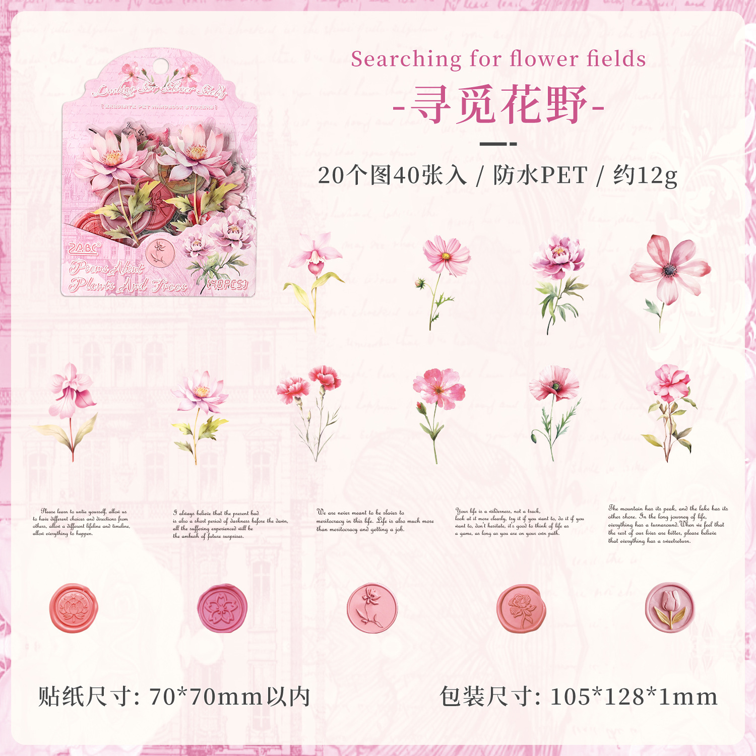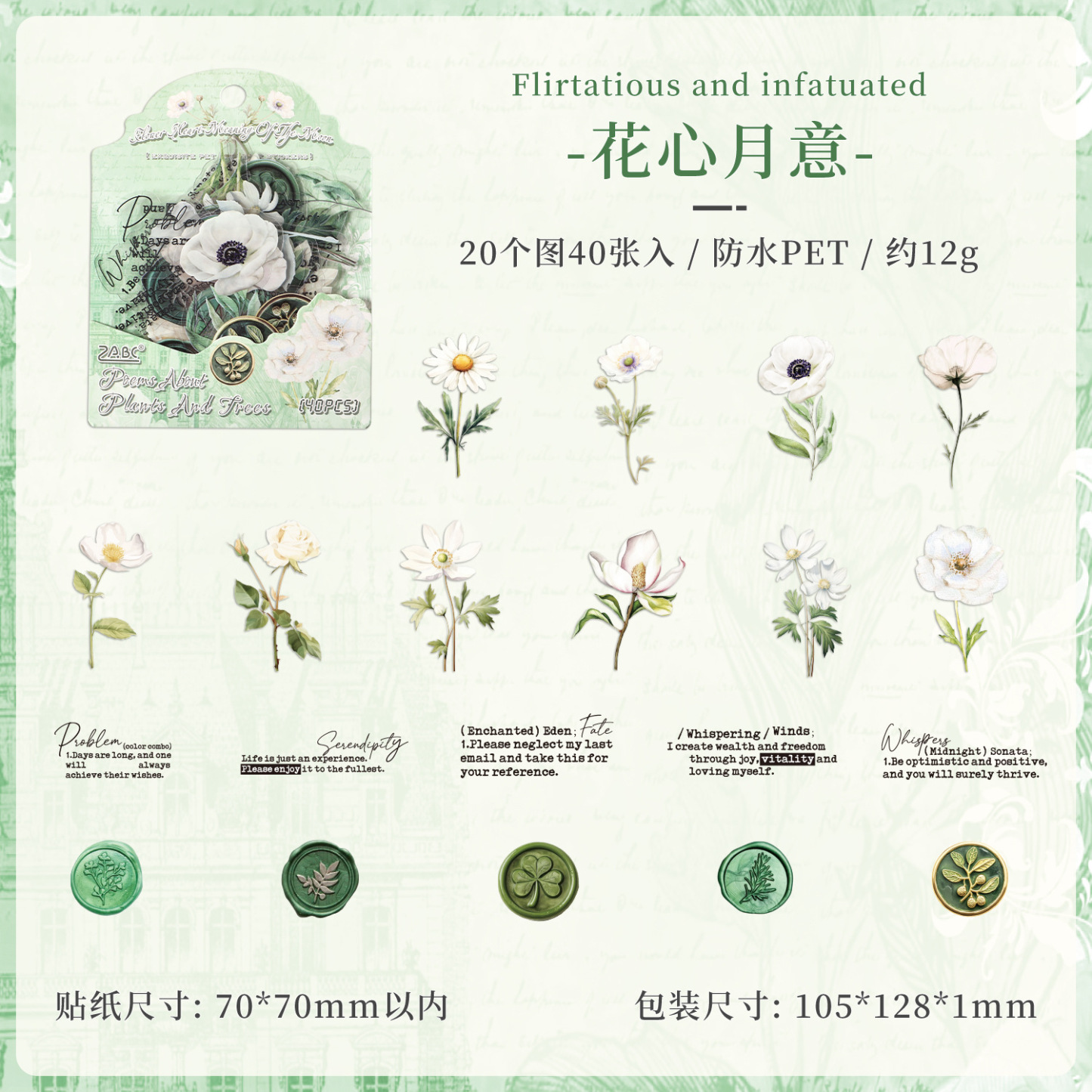 40Pcs Flower Plant Theme PET Stickers