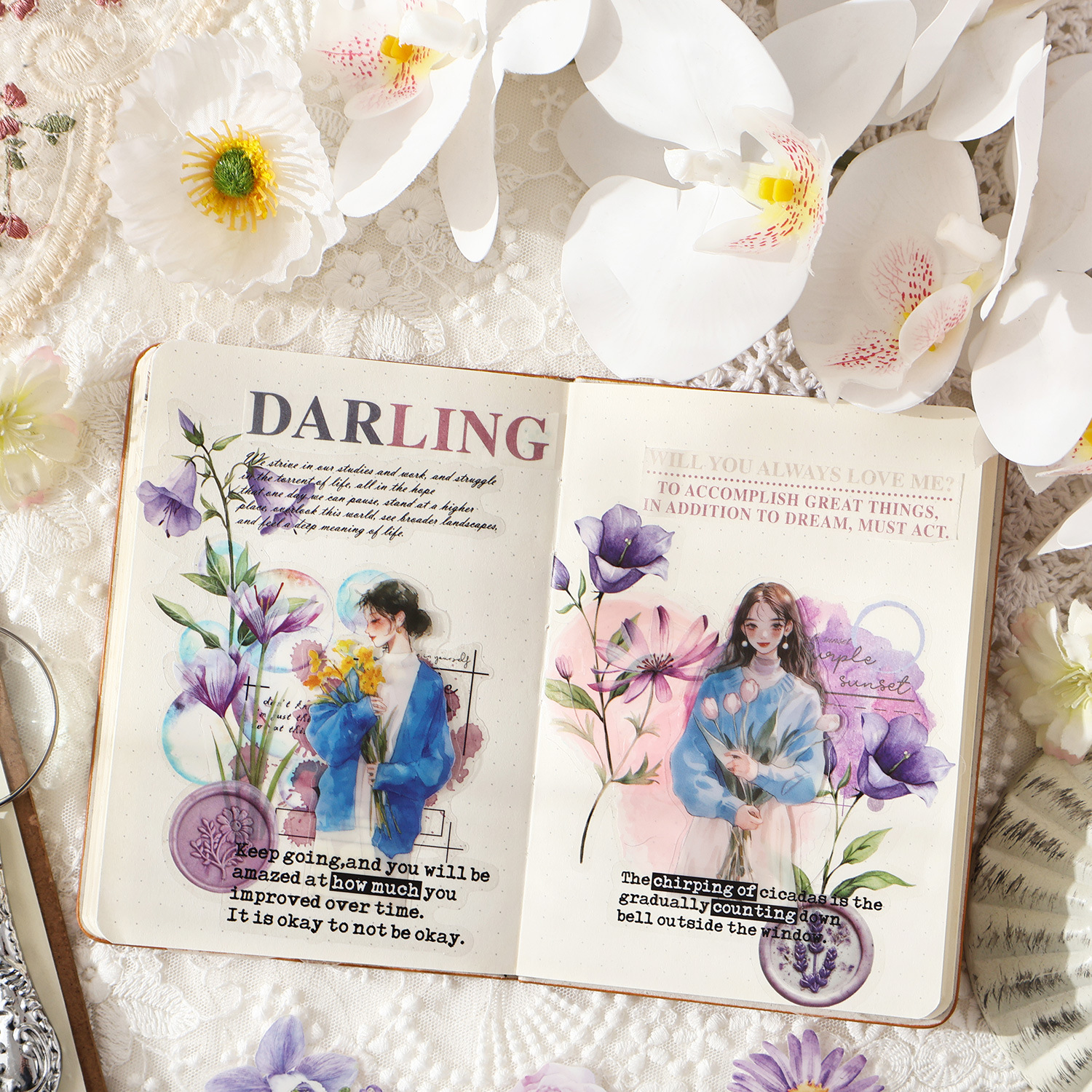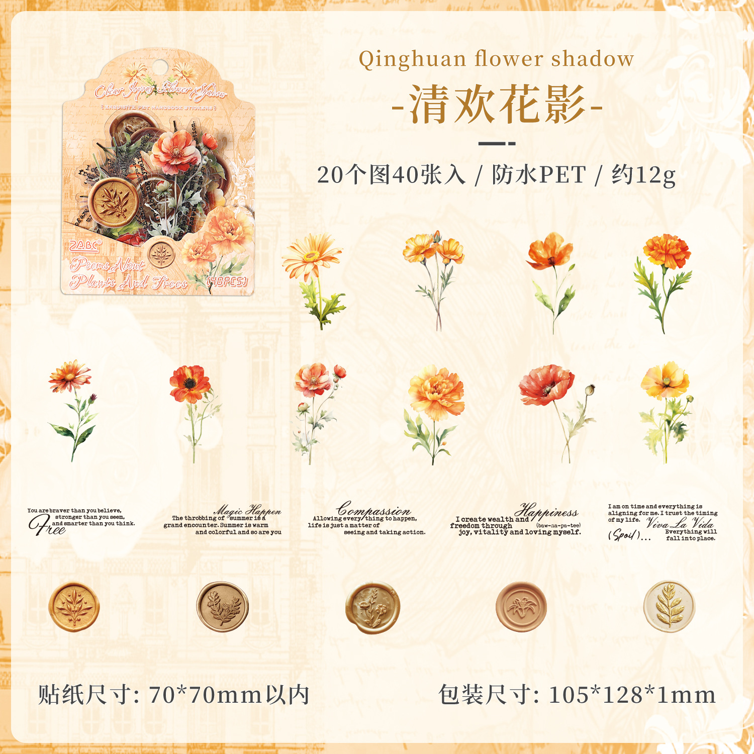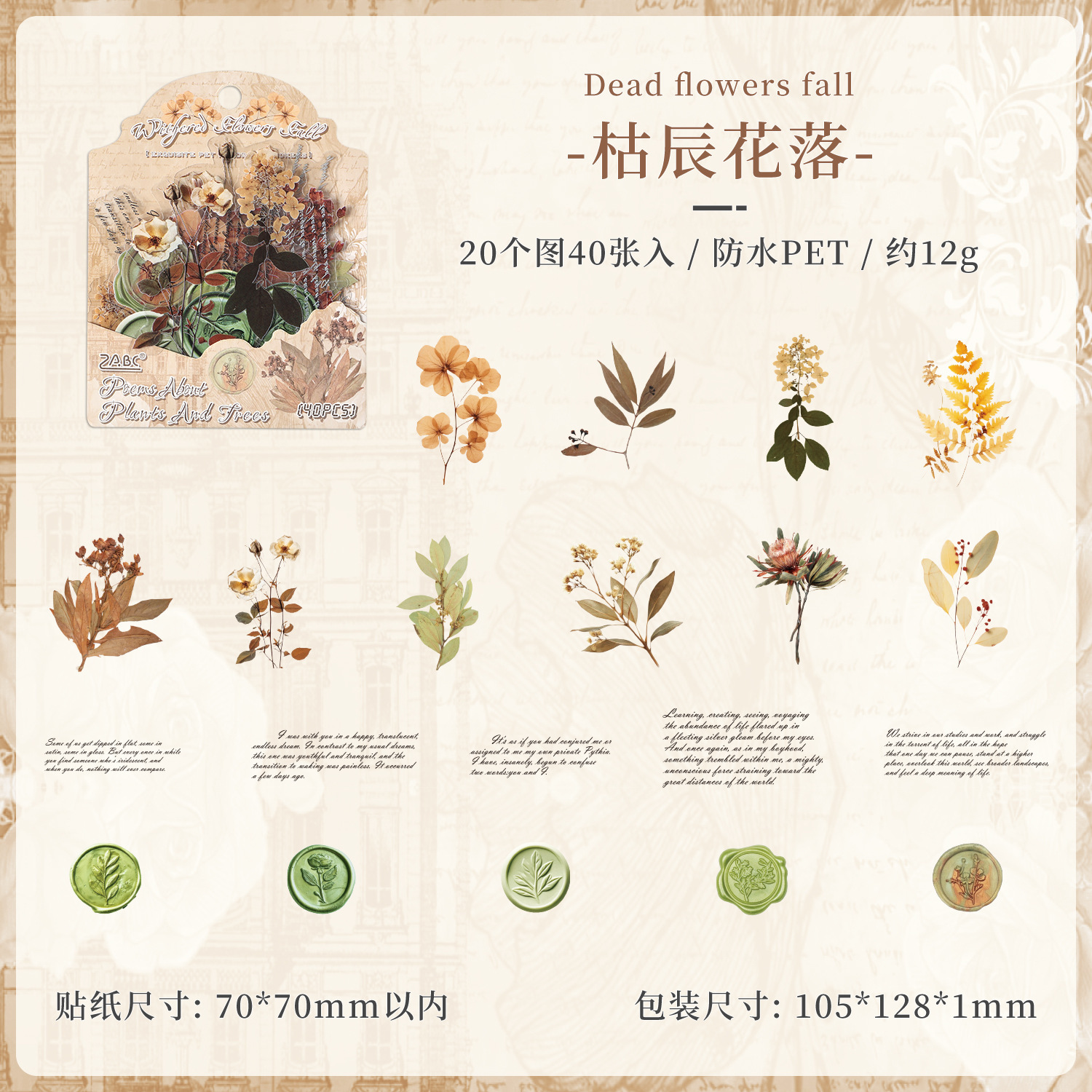 40Pcs Flower Plant Theme PET Stickers