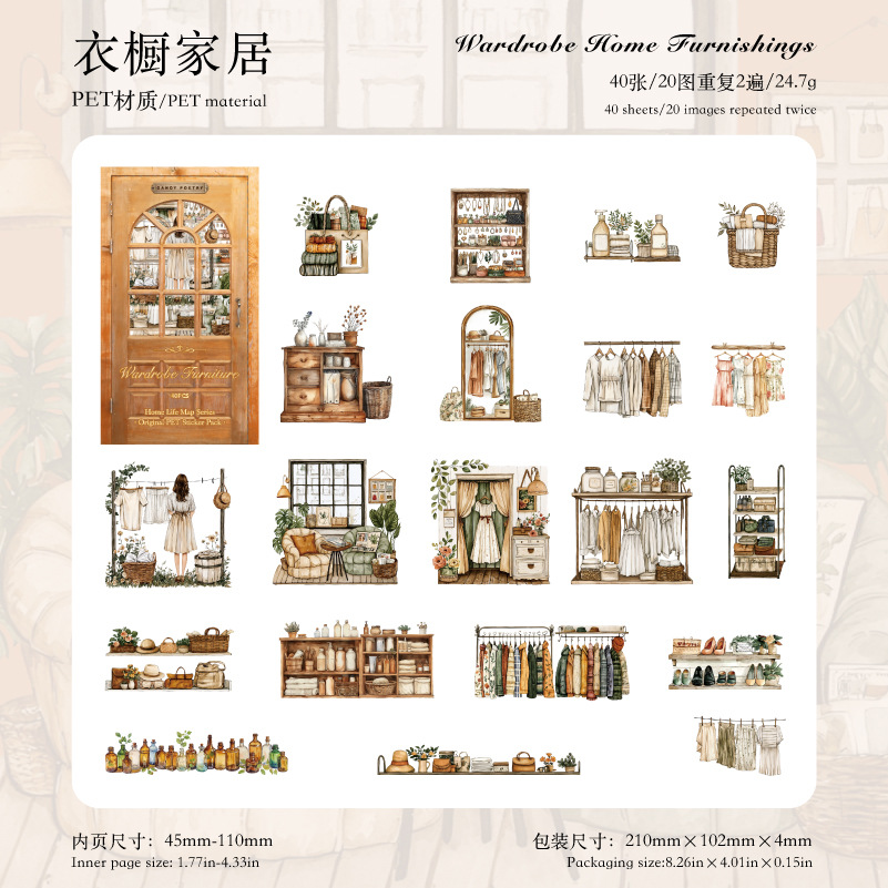 40Pcs/Pack Furniture Loft Theme PET Stickers