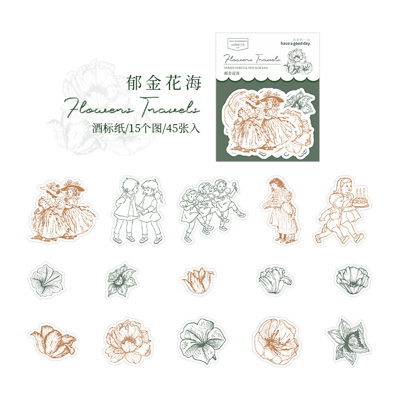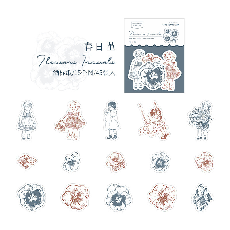 45Pcs Flower Theme Stickers