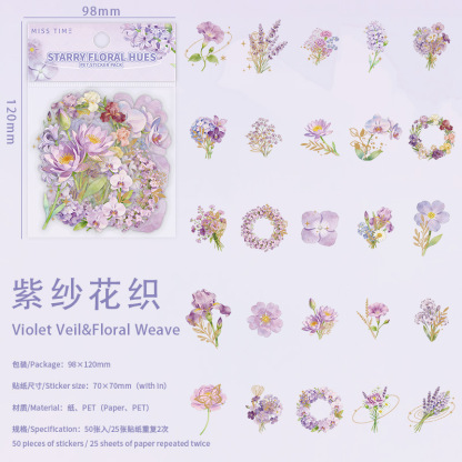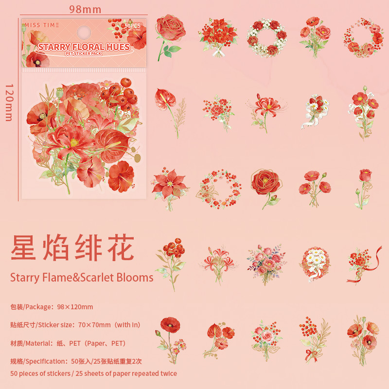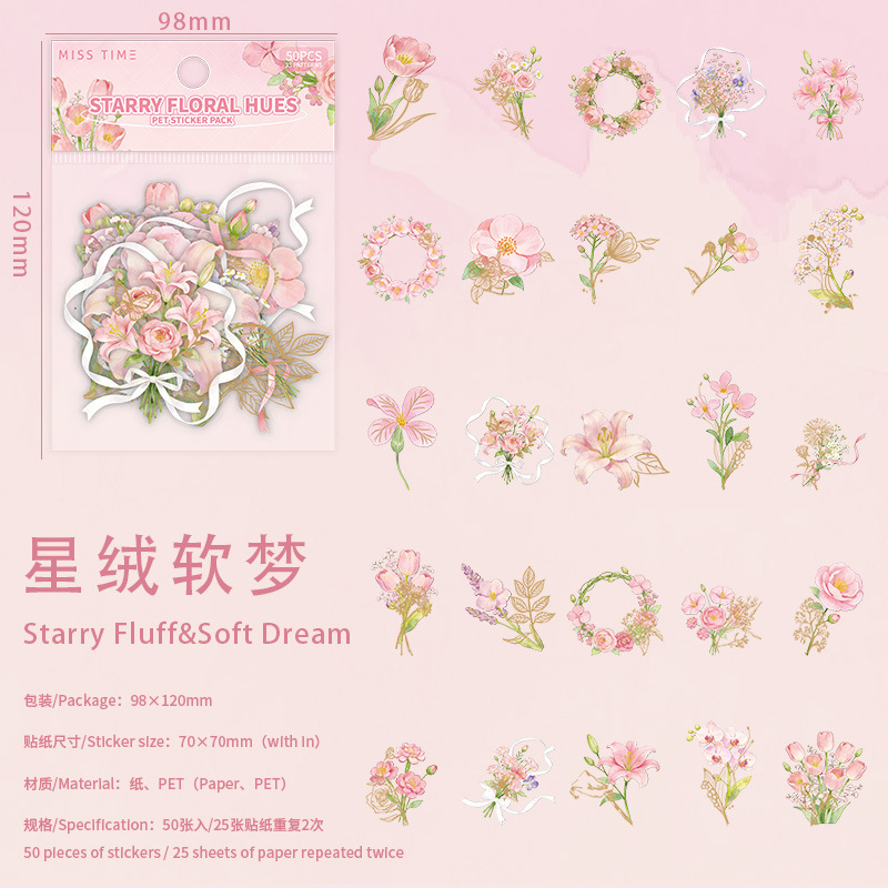 50PCS Starburst & Floral Theme PET Sticker Set