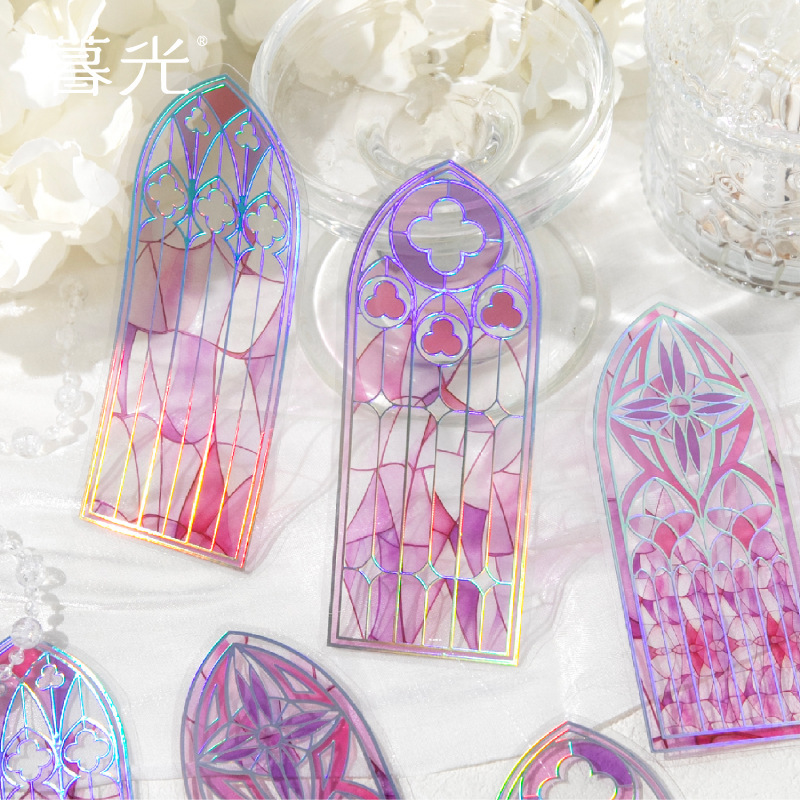 6Pcs Holographic Window Stock Paper Bookmark