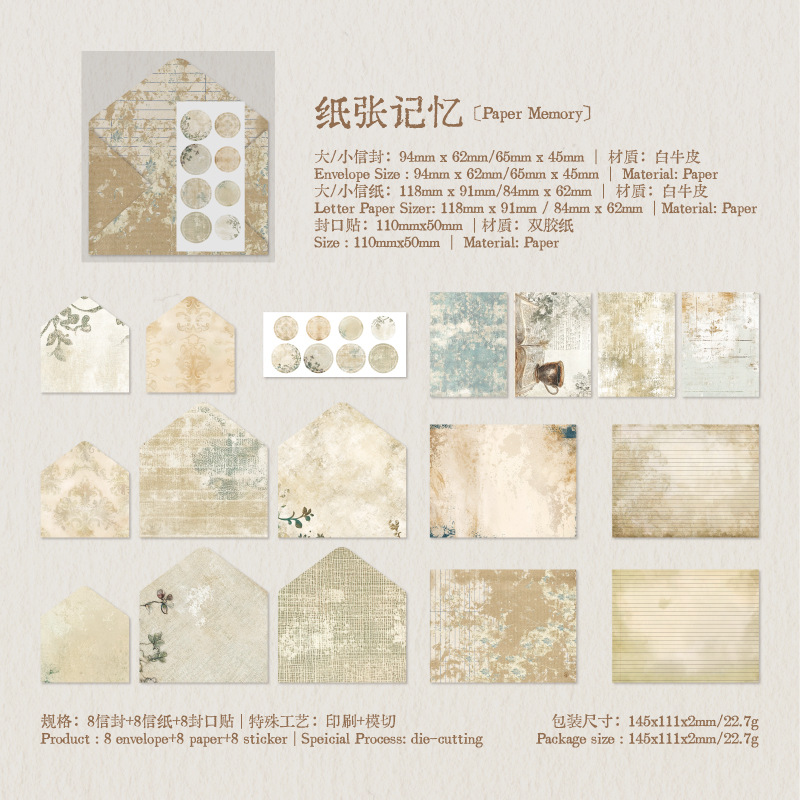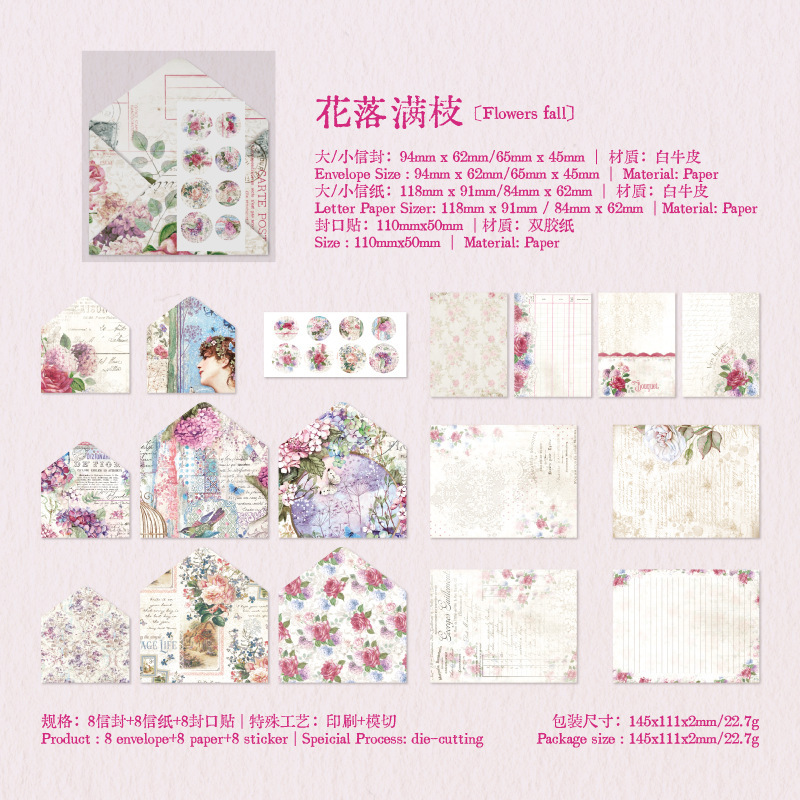 8Pcs Floral Envelope Theme Scrapbook Material Paper