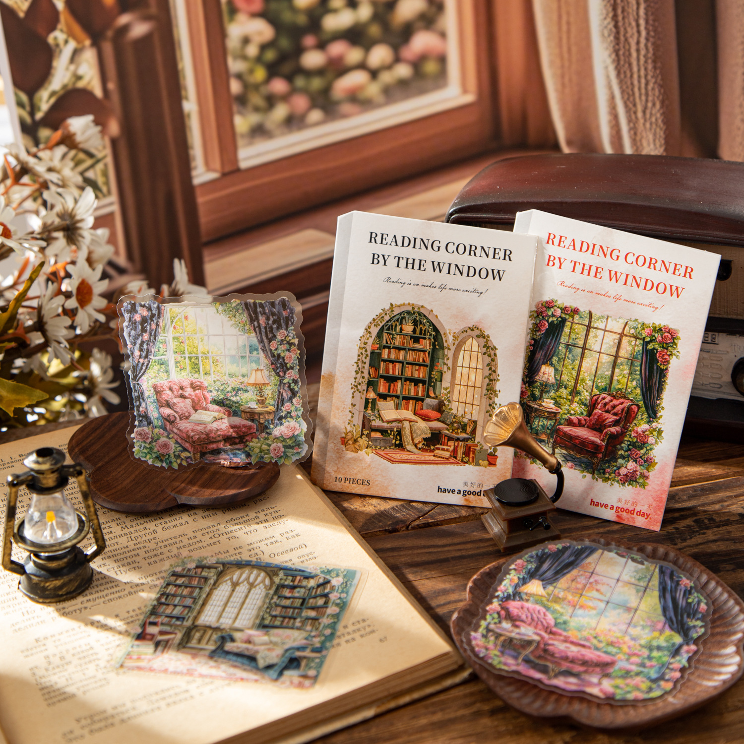 10Pcs/Pack Flowers Wooden Door Theme Hard Card Sticker
