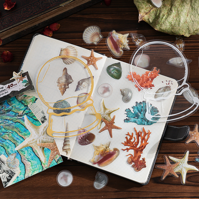 42Pcs/Pack Flowers Shells Plants Bottles Elements PET Stickers