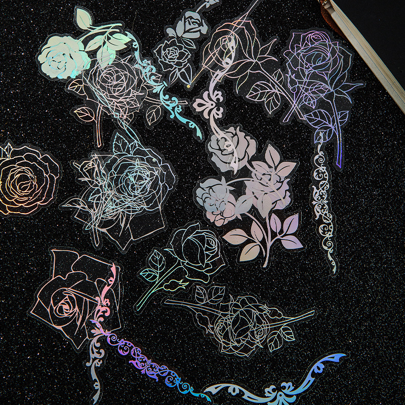 30pcs/Pack Holographic Flower Butterfly Themed PET Stickers