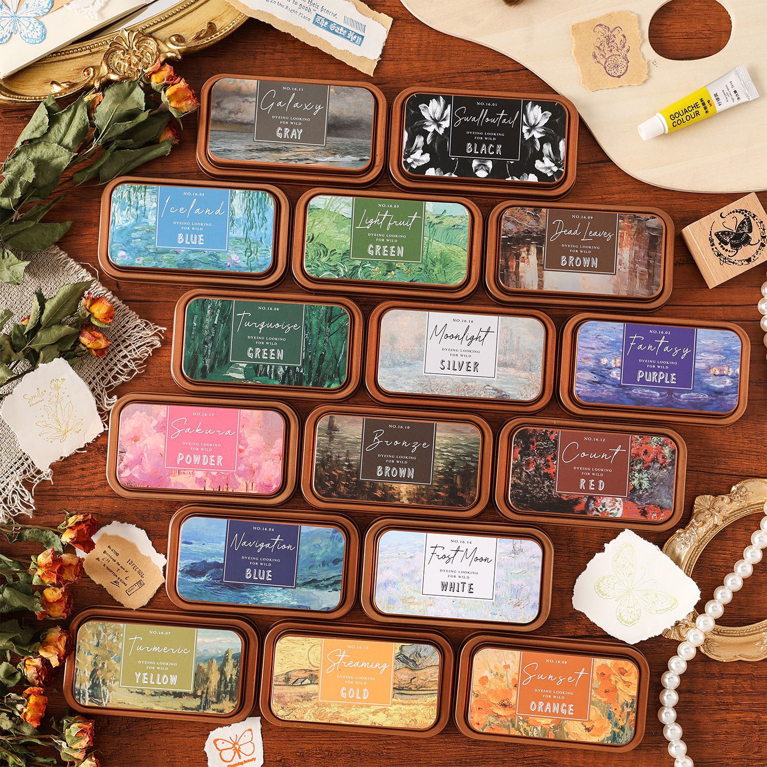 1Pc Retro Oil Painting Theme Tin Box Ink Pad