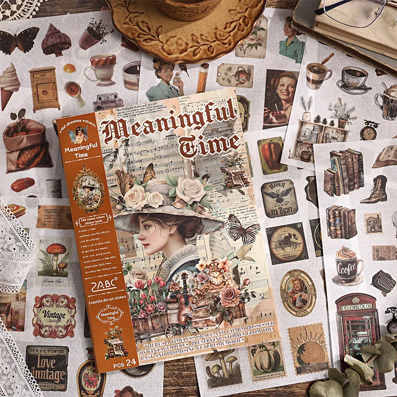24pcs/book Vintage Bulk Precut Stickers Scrapbook Sticker Book