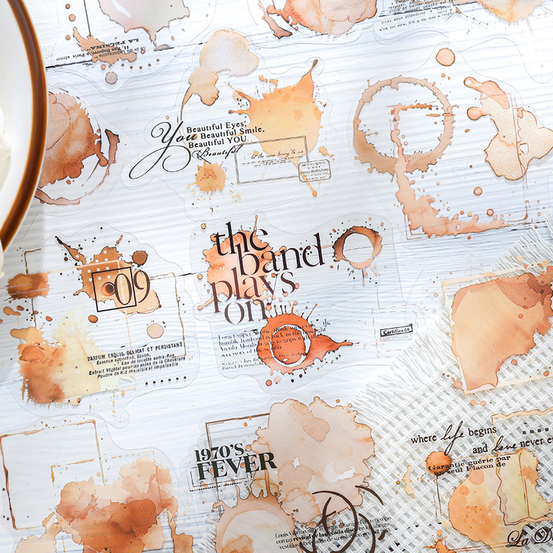 2Sheet/Pack Vintage Watercolor Stains Theme PET Transfer Stickers