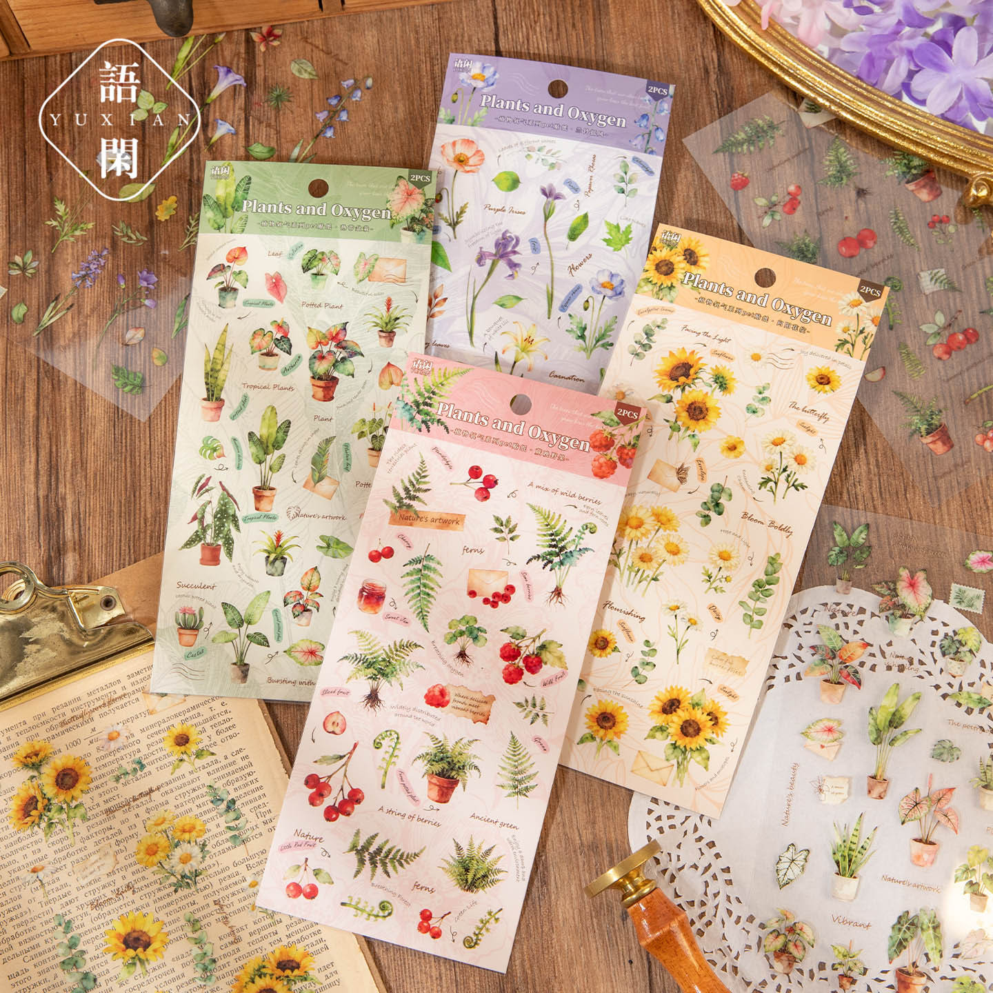 20Pcs Vintage Flower Mushroom Plant Theme PET Stickers