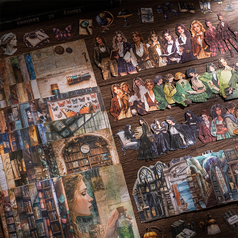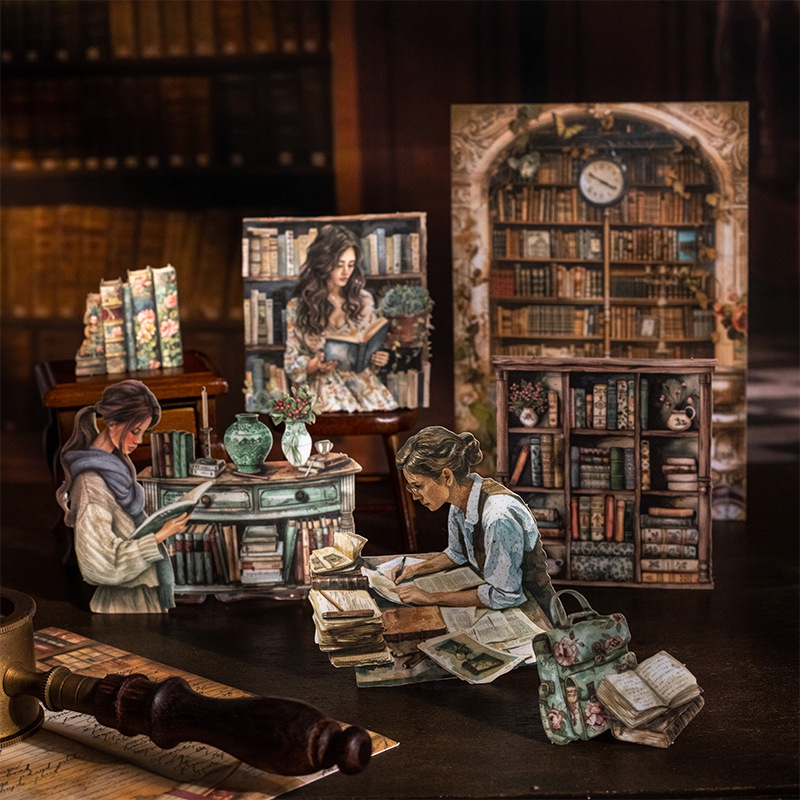 25Pcs Library Girl Reading Theme Double Material Pack