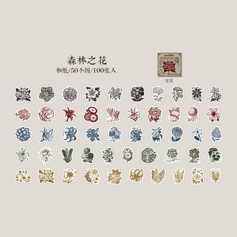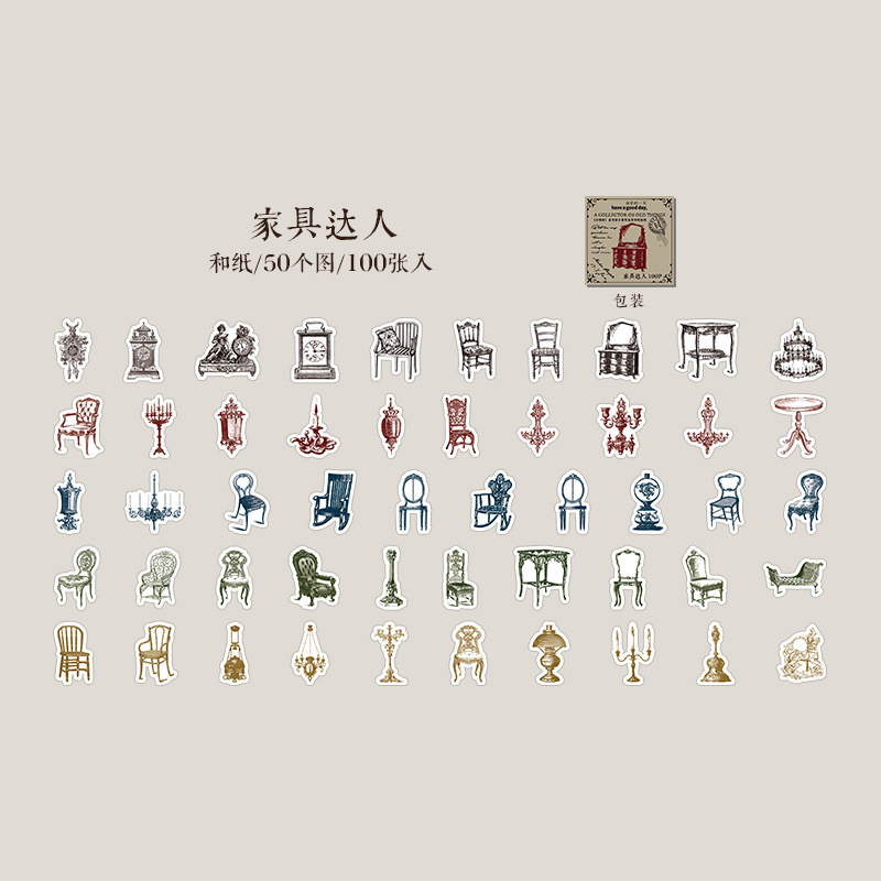 100Pcs Vintage Item Elements Washi Stickers
