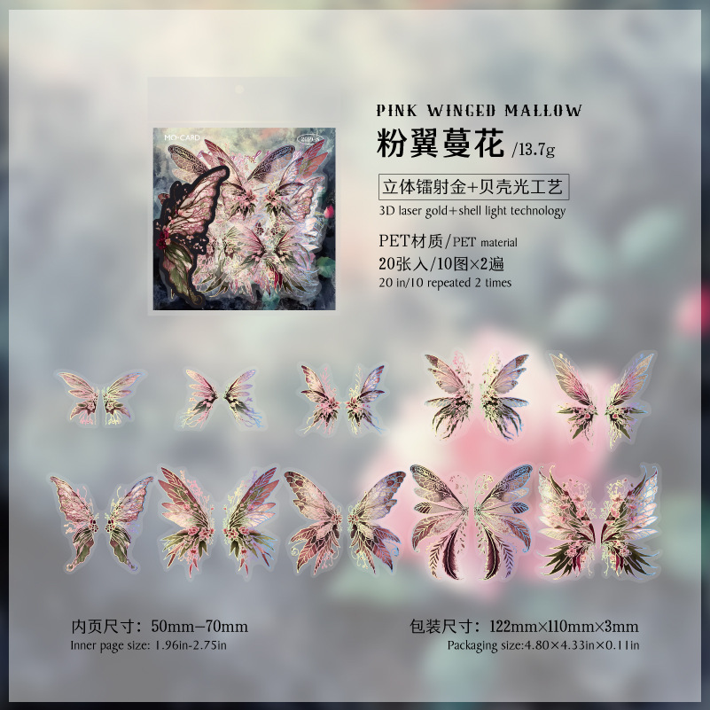 20Pcs/Pack Holographic Butterfly Theme PET Stickers