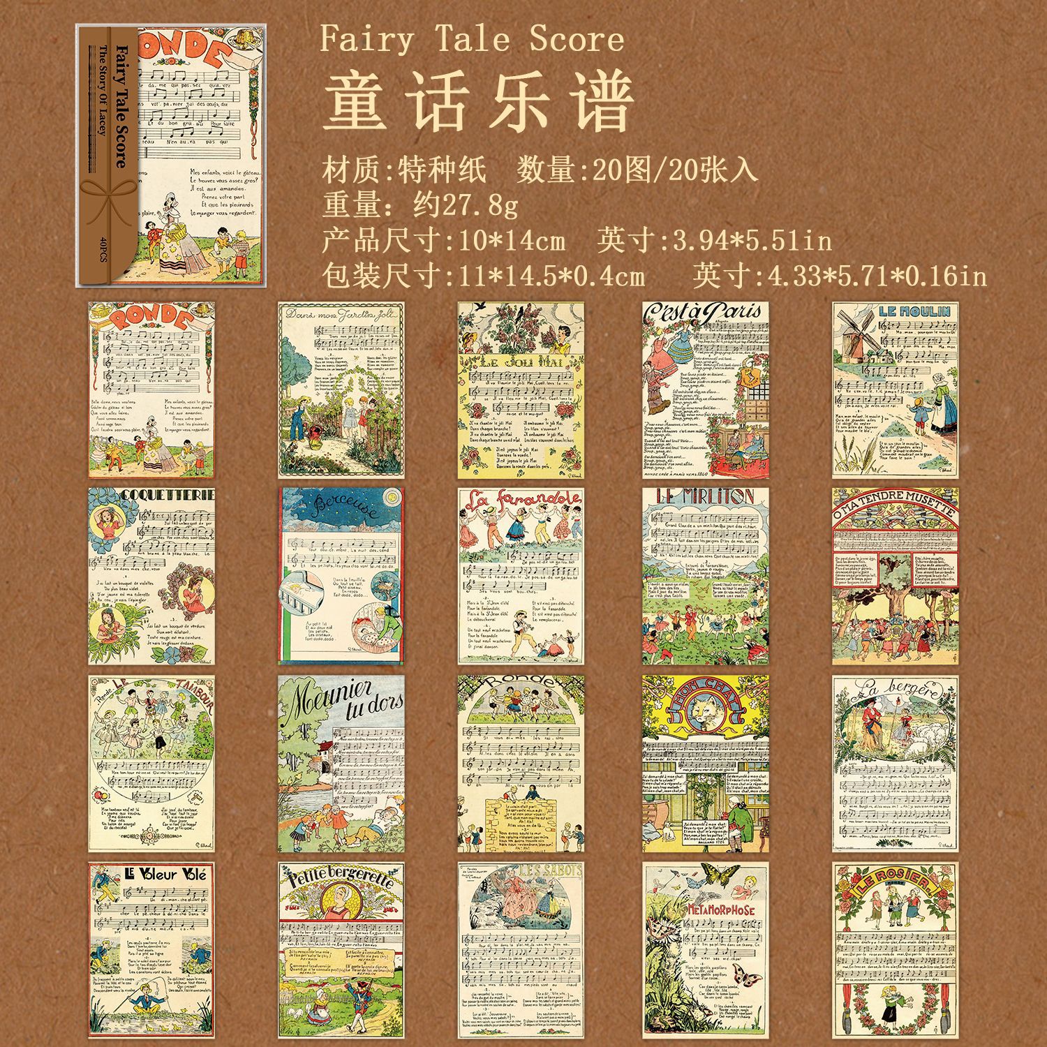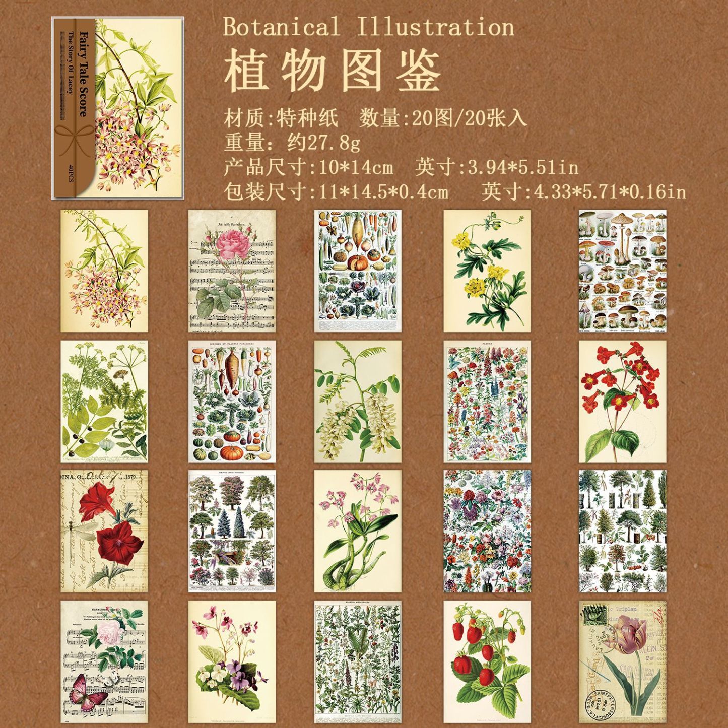 20pcs Retro Floral Theme Material Paper