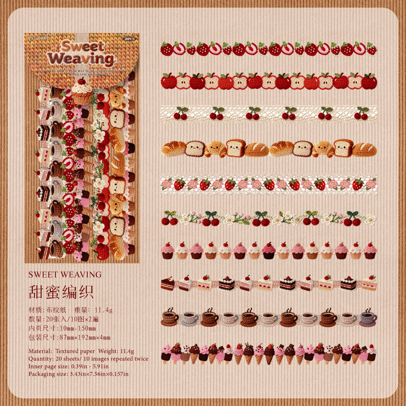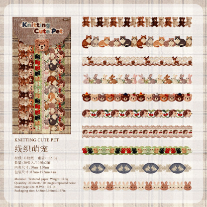 20Pcs Strip Knitting Cute Animal Hard Card Stickers