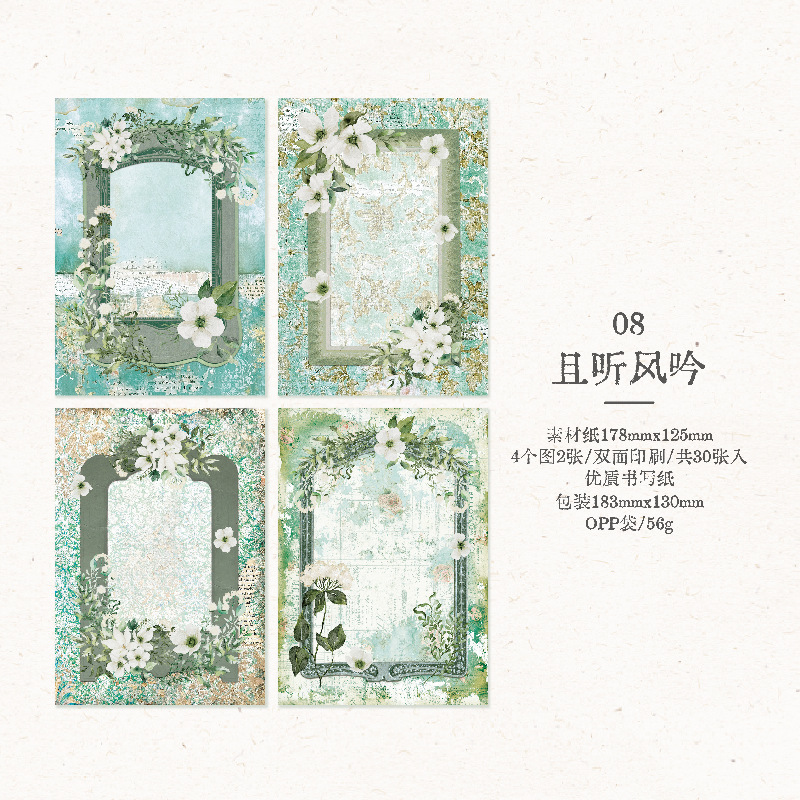 30pcs Retro Floral Background Material Paper