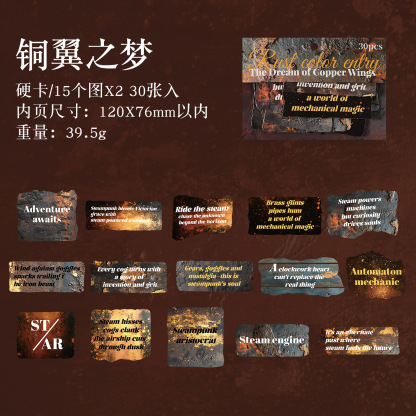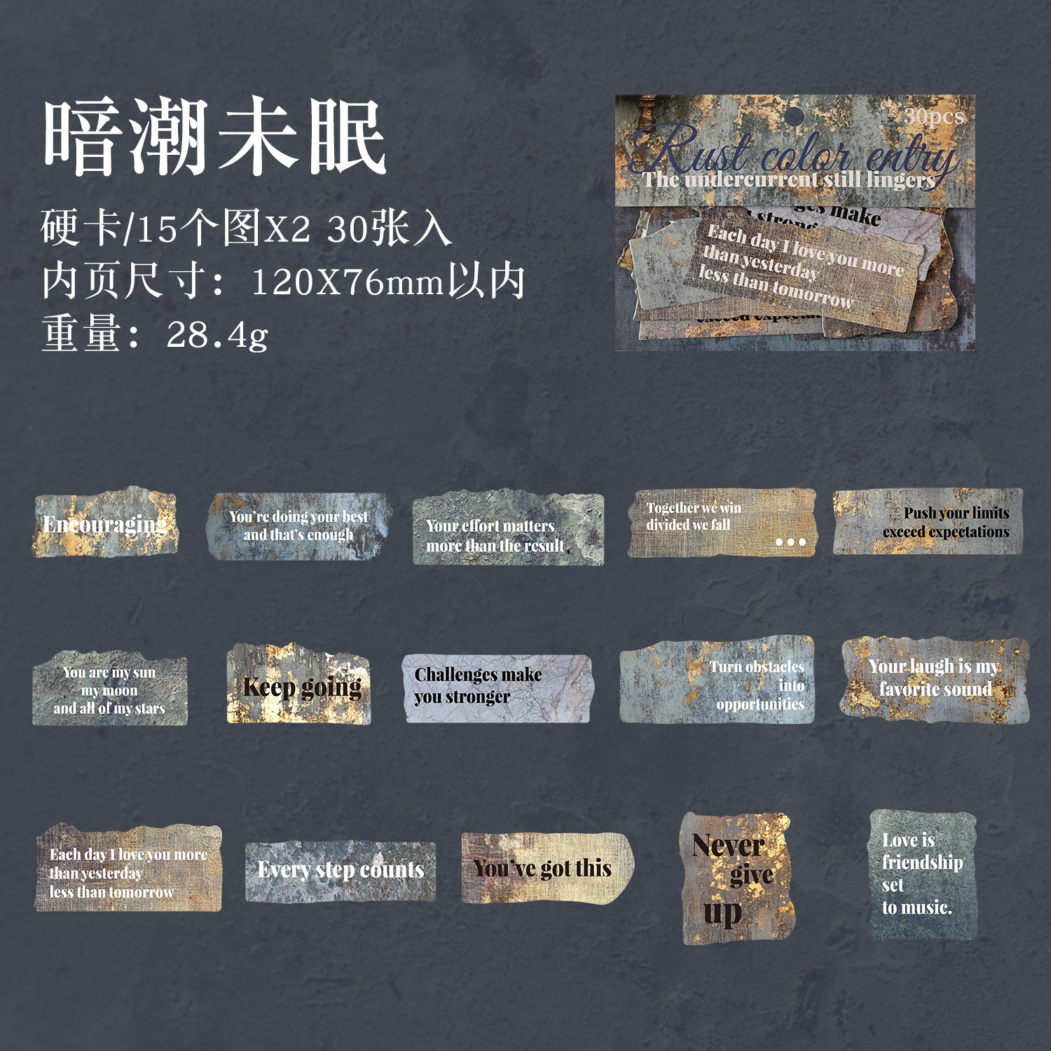 30Pcs Vintage Rust Phrase Quote Hard Card Sticker