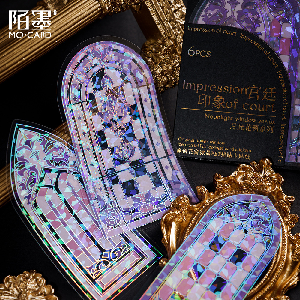 6SheetPcs/Pack Holographic Ice Crystal Window Theme PET Sticker