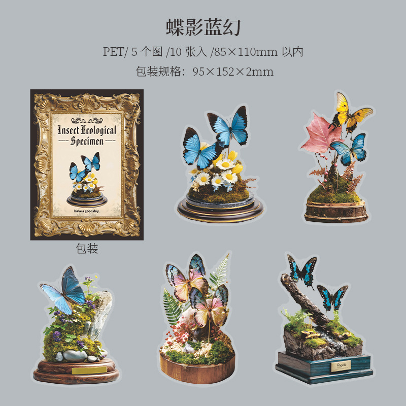 10Pcs Animal Specimen Theme PET Stickers