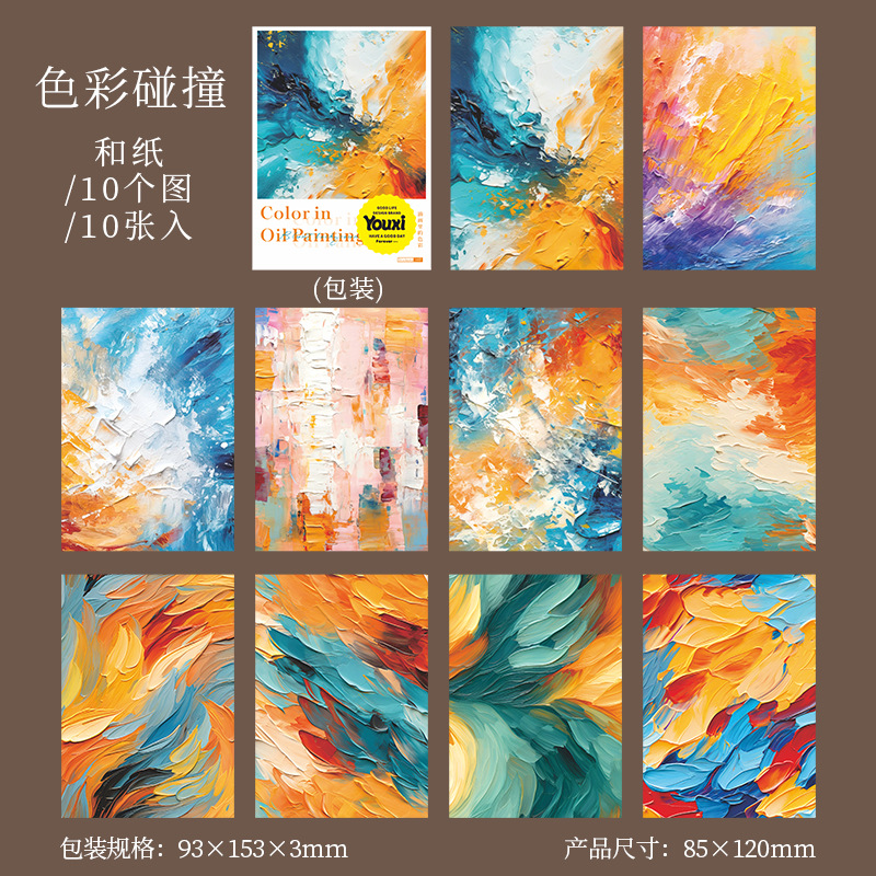 10Pcs/Pack Oil Painting Theme Background Washi Sticker