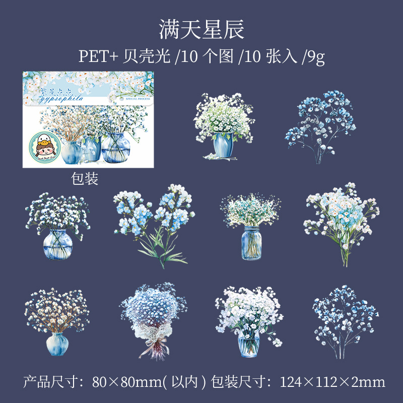 10Pcs/Pack Pre-cut Valentine's Day Flower Basket Theme PET Stickers