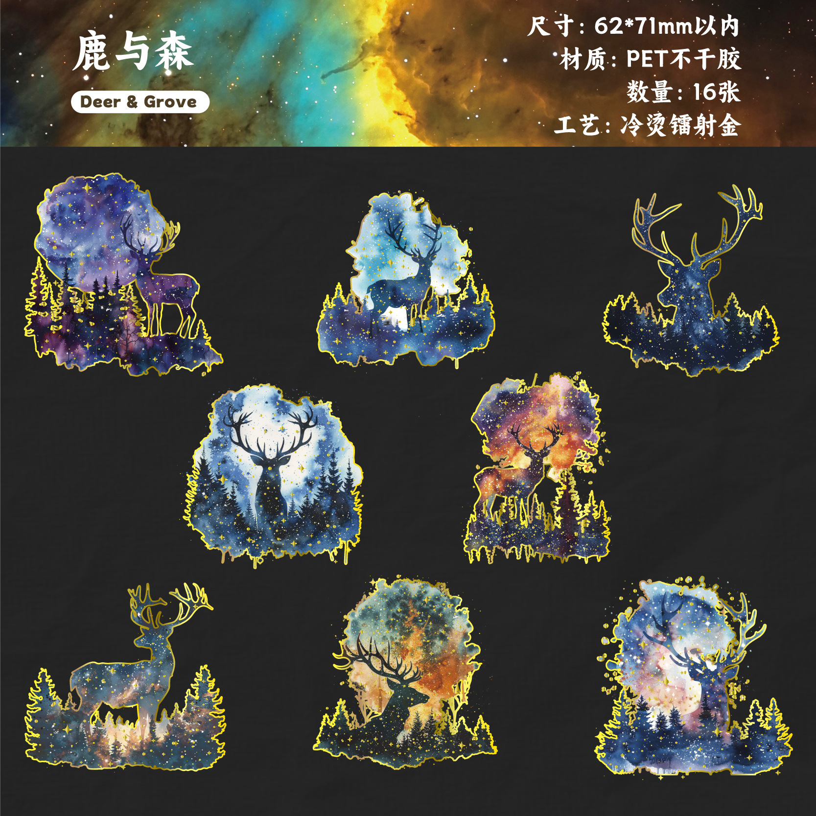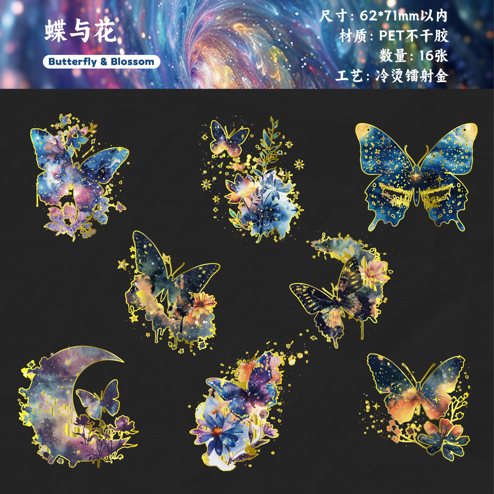 16Pcs Starry Sky Butterfly Jellyfish Elf Element Hot Stamping PET Sticker